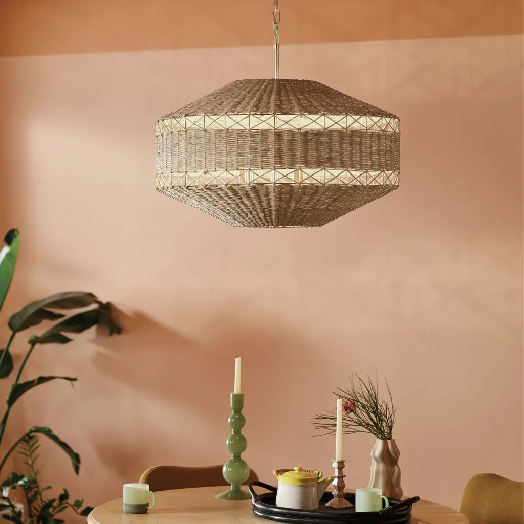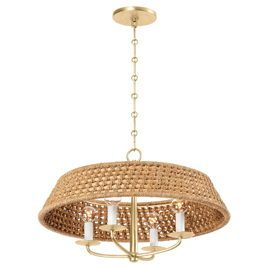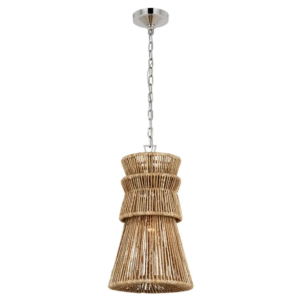 Add warmth and style to any room with the Lulo pendant light. Inspired by the Japanese art of wrapping river stones with natural cane, this fixture features beautifully woven cord. Our signature champagne bronze finish complements its gently curved shape. Light peeks through the open pattern, adding eye-catching texture while casting a soft, welcoming glow.