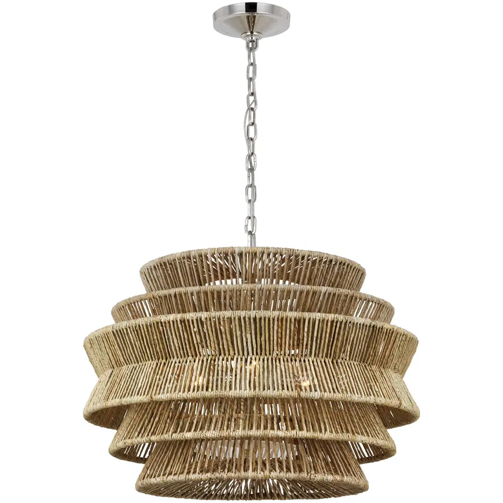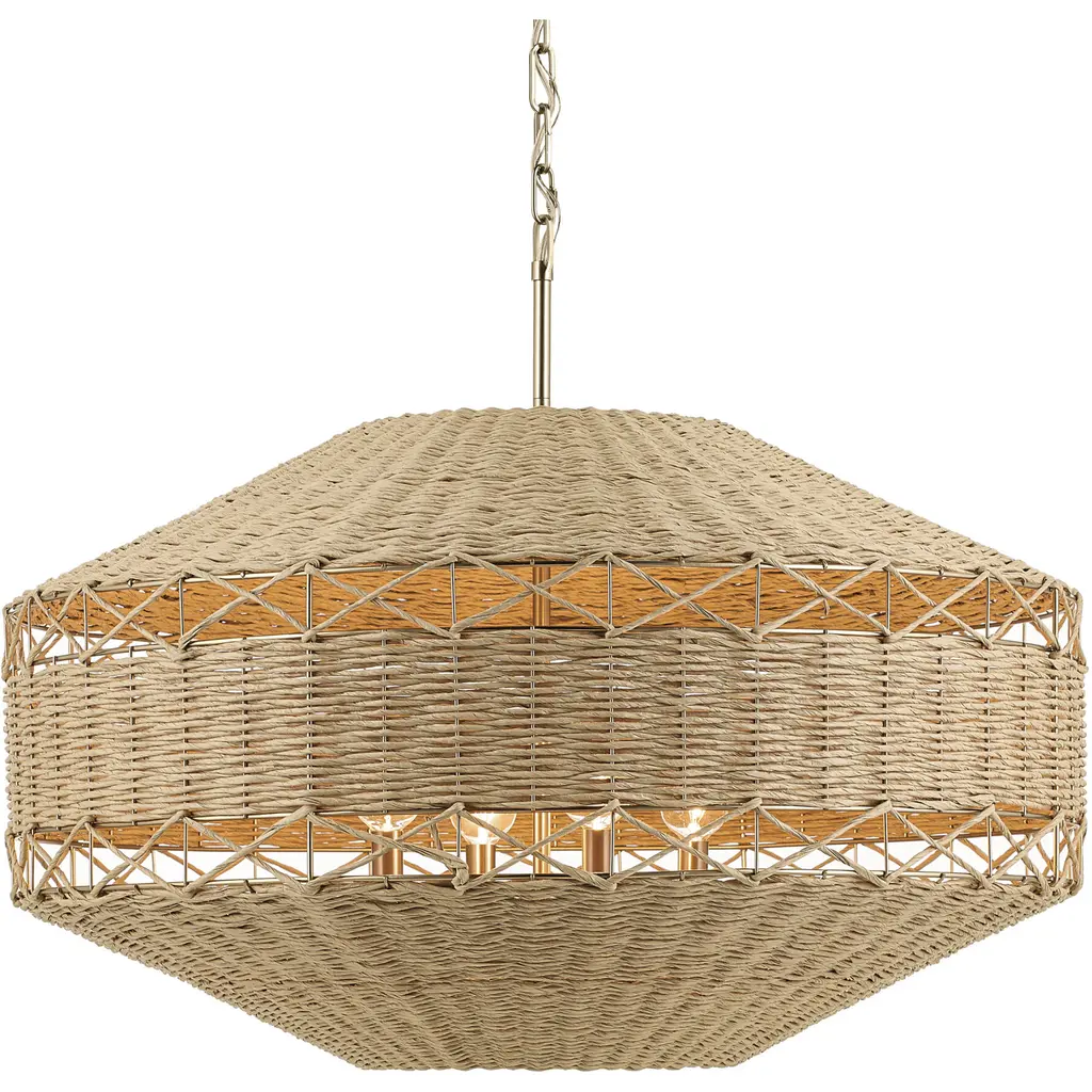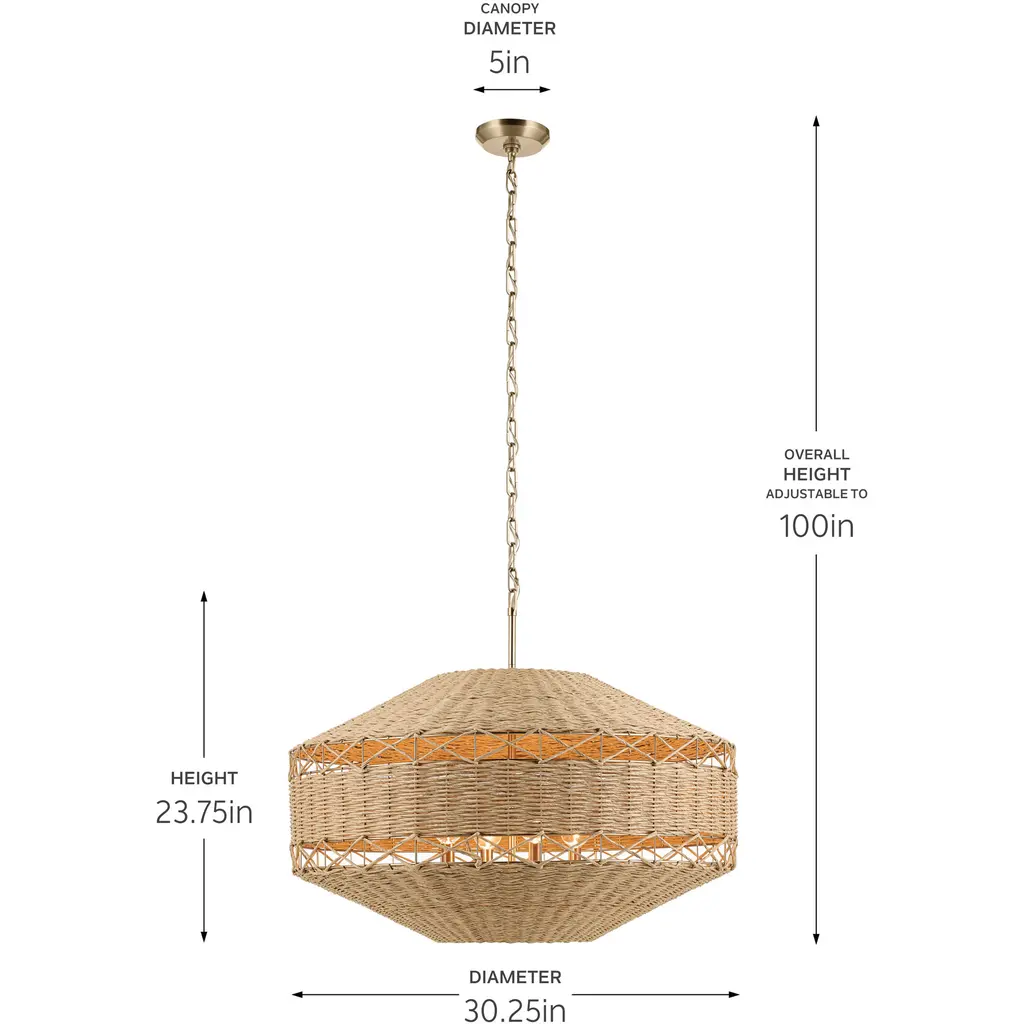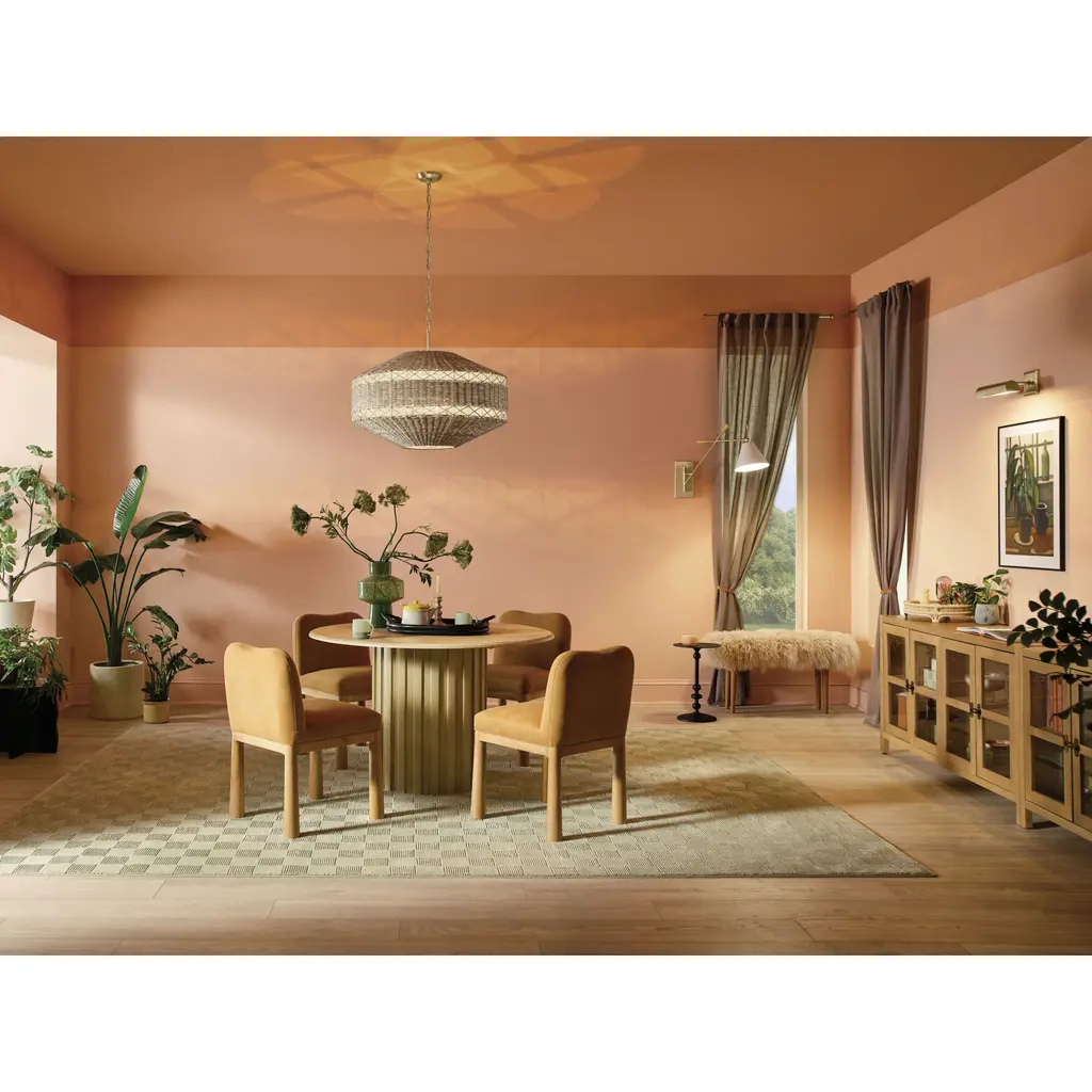 Add warmth and style to any room with the Lulo pendant light. Inspired by the Japanese art of wrapping river stones with natural cane, this fixture features beautifully woven cord. Our signature champagne bronze finish complements its gently curved shape. Light peeks through the open pattern, adding eye-catching texture while casting a soft, welcoming glow.