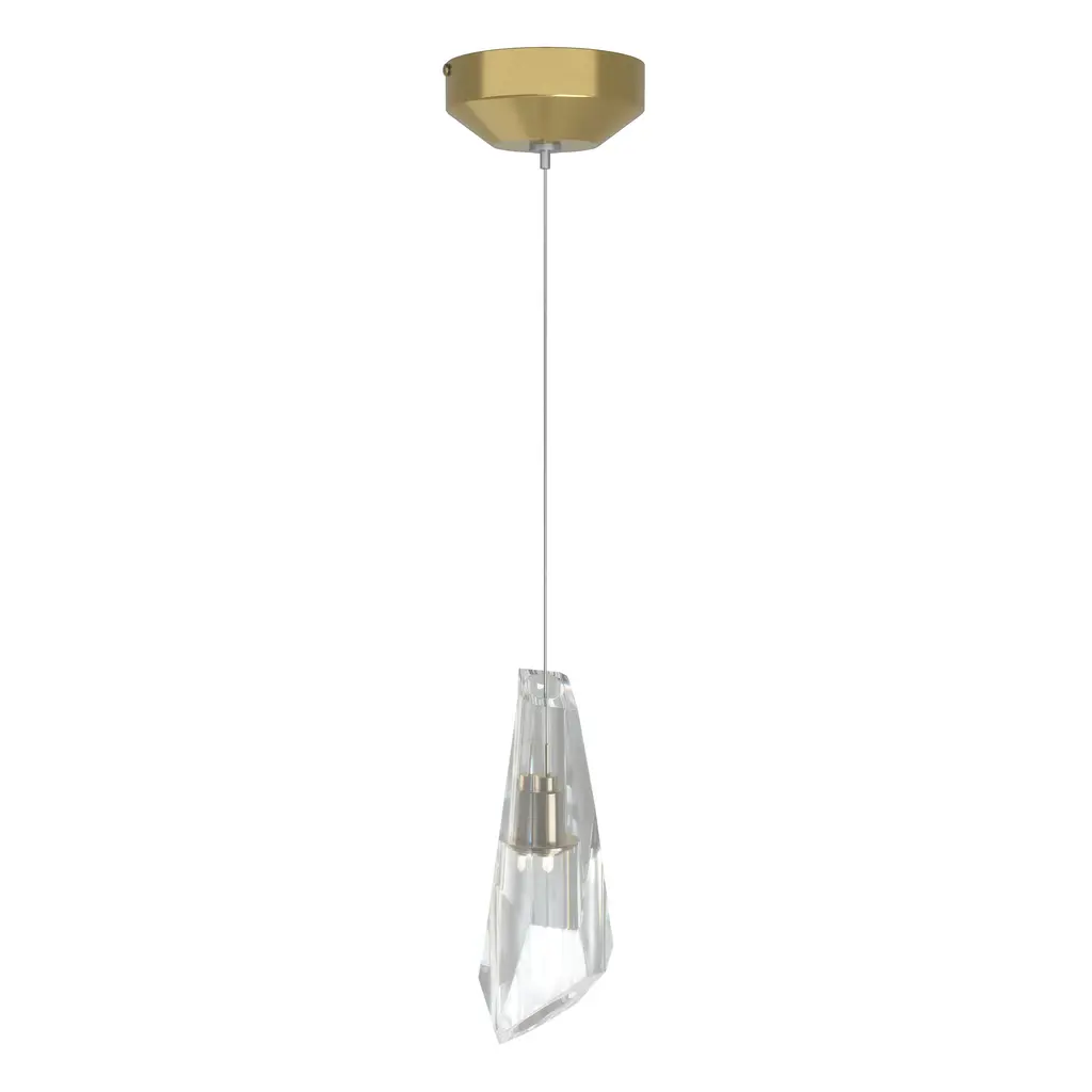 A thick, lustrous jewel of faceted crystal encases the light source within it. The Luma mini pendant is eye-catching opulence that offers a sophisticated beauty even when unlit.