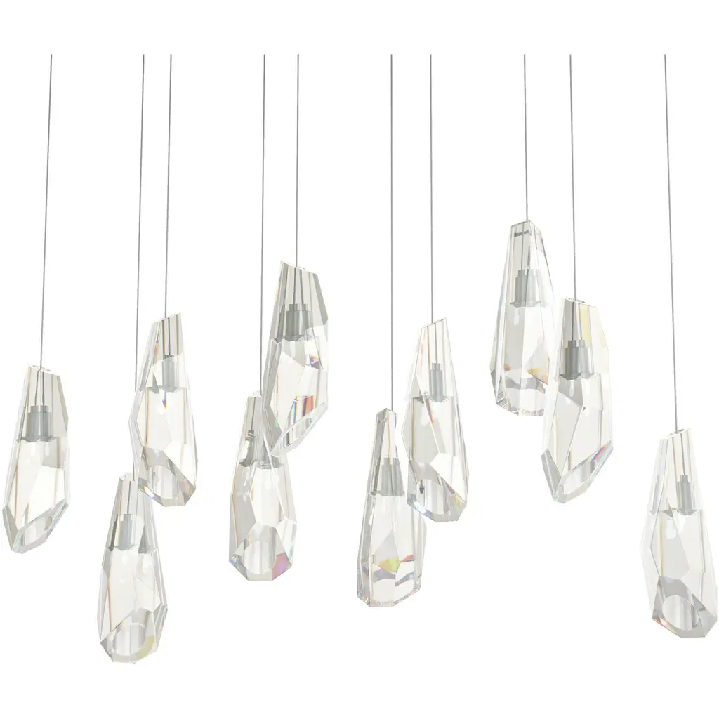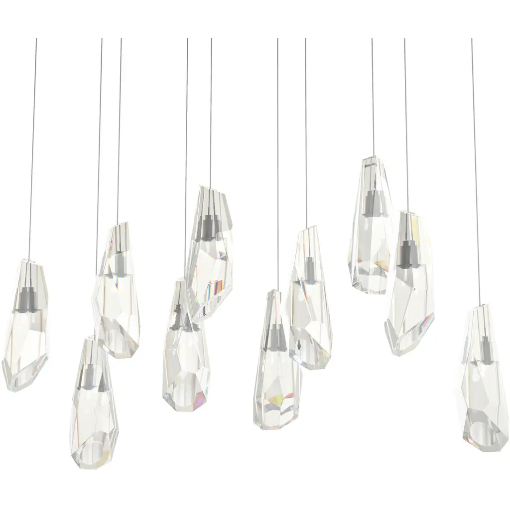 A linear multi-port fixture, the Luma 10-Light features two rows of large, stunning hand-cut and polished crystals that can be hung at the same level or staggered to suit the space. Customizable in length, as well, this graceful array of crystal-adorned lights creates a focal point in any room.