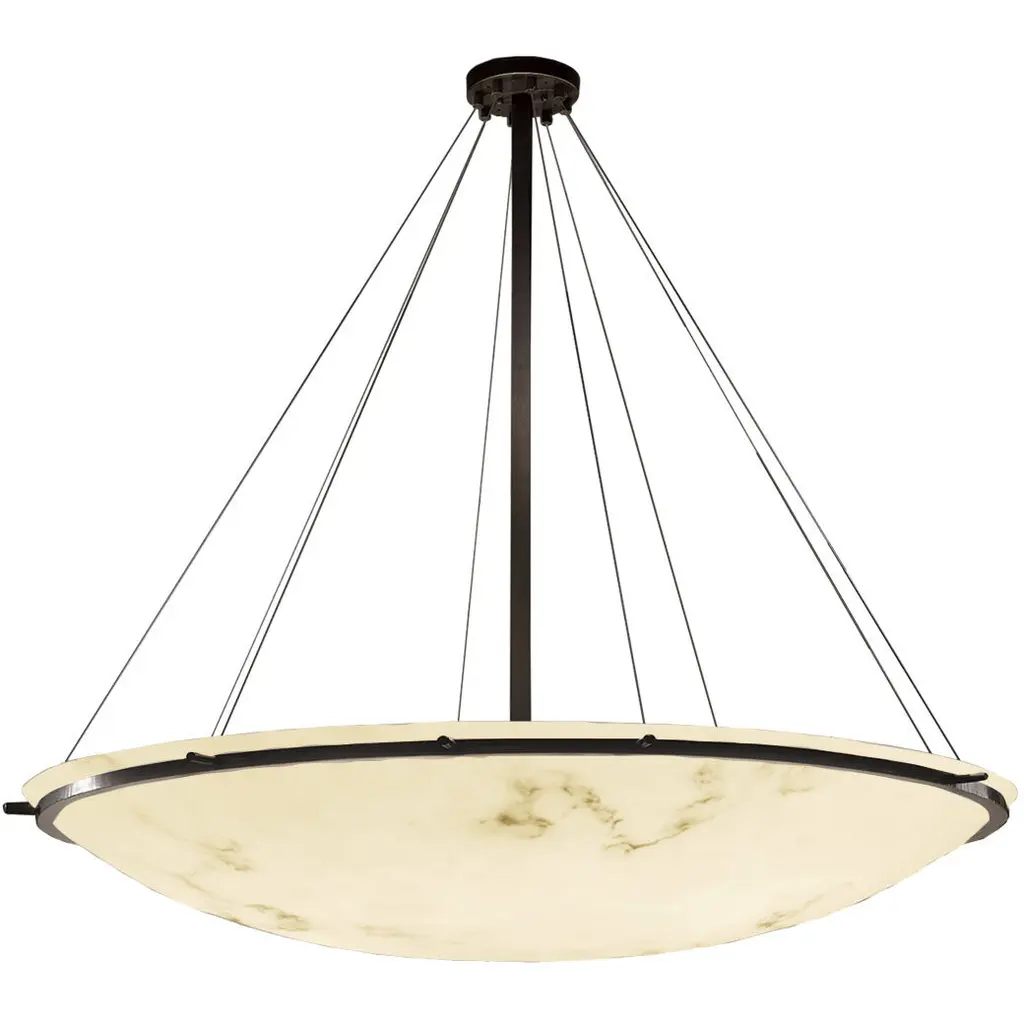 LumenAria - Ring 6-Light 27" Round Pendant Bowl - Round Bowl Shade - Faux Alabaster - Matte Black - E26 - CFL