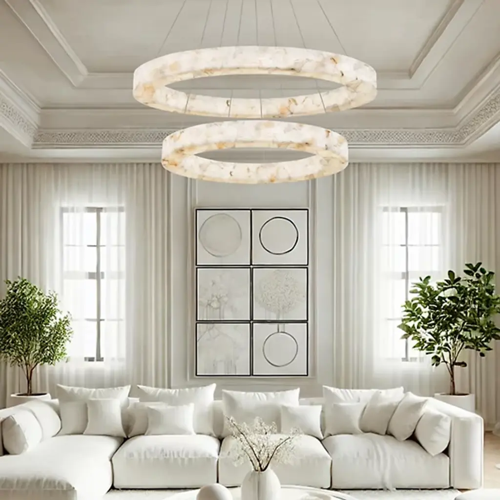 Lumenaria Led 2-Tier Alabaster Rocks Ring Pendant