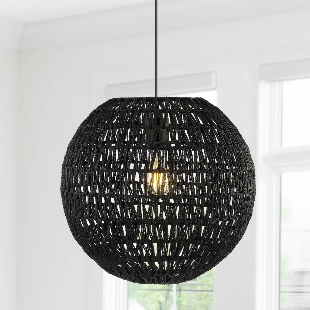 Luna 1-Light Bohemian Modern Woven Rattan/iron Led Pendant - Black