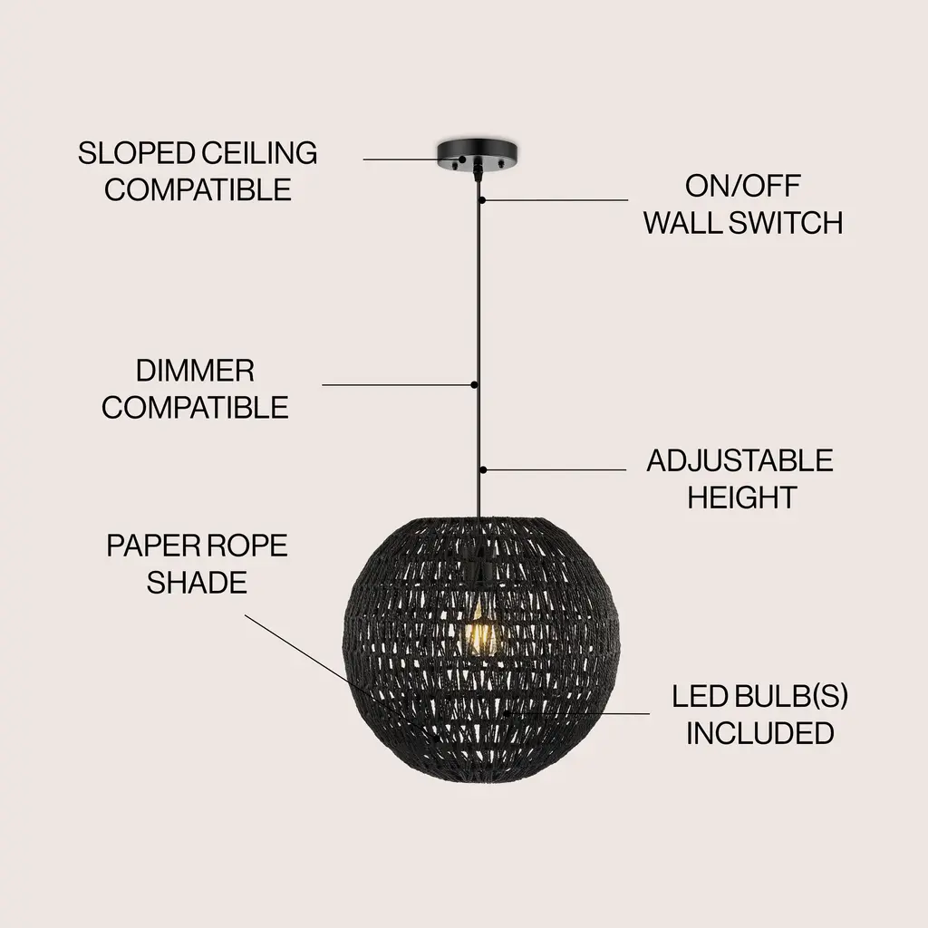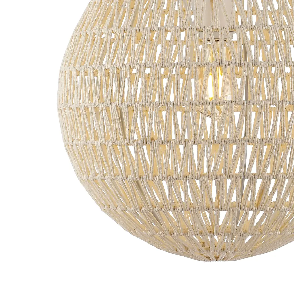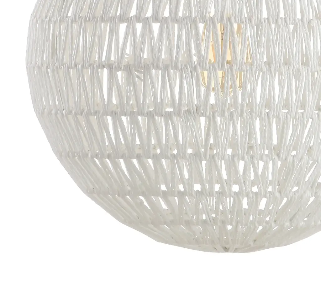 Modern design meets traditional craftsmanship in our white woven globe pendant. Made from paper wicker woven onto a sturdy metal frame, this ceiling fixture adds a Bohemian touch to your living room, bedroom, or dining room. Additionally, the drop is adjustable from 16" to 88", making it suitable for a ceiling of any height.