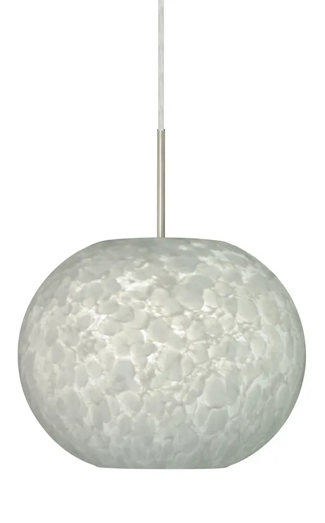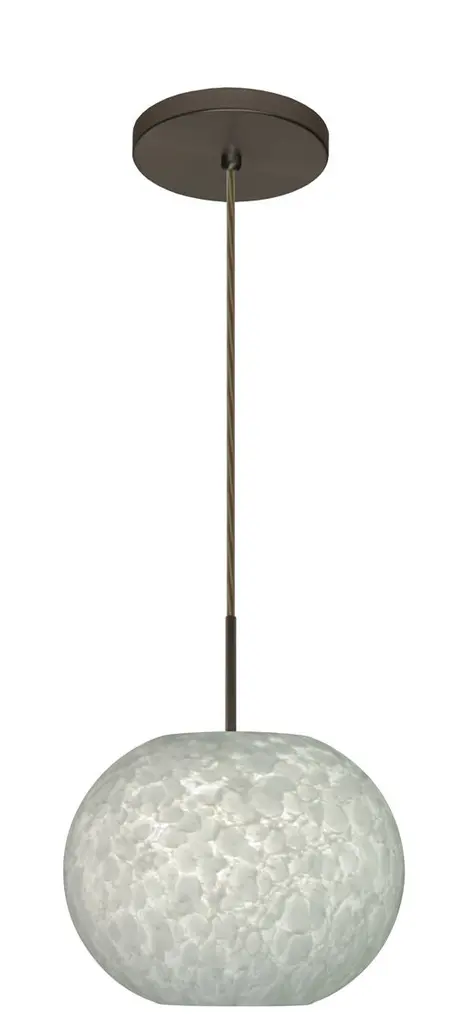 The Luna pendant features a flattened globe-shaped glass, creating a refined contemporary look. Our Carrera glass is a classic yet modern décor that gives off a soft white light. Clear molten glass is rolled in alabaster powder like frit, and then blown into shape with a semi-clear frosted white inner finish. This décor is created by rolling molten glass in small bits of white called frit. The smooth satin finish on the clear outer layer is a result of an extensive etching process. This blown glass is handcrafted by a skilled artisan, utilizing century-old techniques passed down from generation to generation. Each piece of this décor has its own artistic nature that can be individually appreciated. The cord pendant fixture is equipped with a 10' SVT cordset and an low profile flat monopoint canopy. These stylish and functional luminaries are offered in a beautiful brushed Bronze finish.