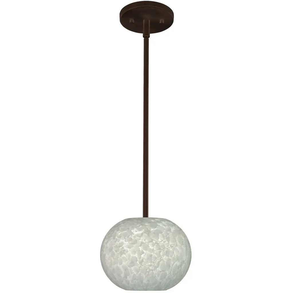 The Luna pendant features a flattened globe-shaped glass, creating a refined contemporary look. Our Carrera glass is a classic yet modern décor that gives off a soft white light. Clear molten glass is rolled in alabaster powder like frit, and then blown into shape with a semi-clear frosted white inner finish. This décor is created by rolling molten glass in small bits of white called frit. The smooth satin finish on the clear outer layer is a result of an extensive etching process. This blown glass is handcrafted by a skilled artisan, utilizing century-old techniques passed down from generation to generation. Each piece of this décor has its own artistic nature that can be individually appreciated. The stem pendant fixture is equipped with an adjustable telescoping section, 4 connectable stem sections (3", 6", 12", and 18") and low Profile flat monopoint canopy. These stylish and functional luminaries are offered in a beautiful brushed Bronze finish.