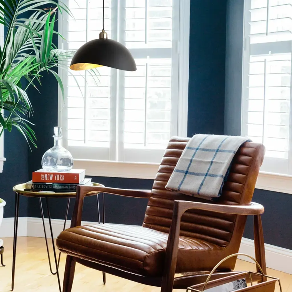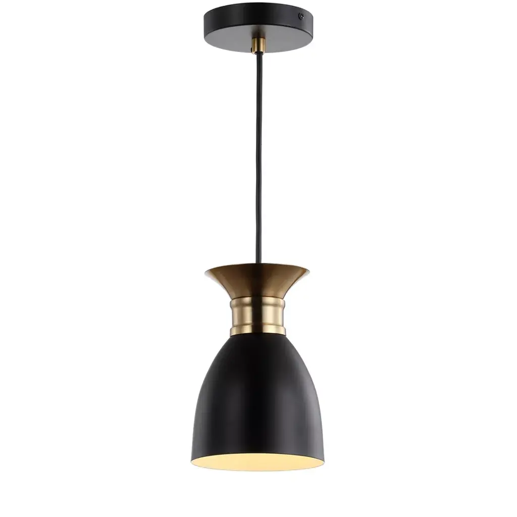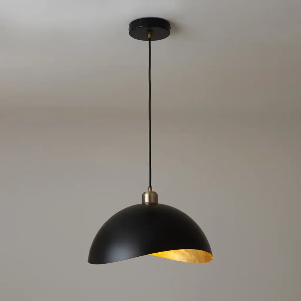 Add a touch of contemporary sophistication to your home with the Luna Bella Pendant light in matte black and weathered brass, featuring a hand-applied gold leaf finish on the inside of the shade. The perfect blend of modern chic and timeless elegance, this pendant light elevates any room with its striking design and warm, ambient glow. Illuminate Your Space with the timeless elegance of the Luna Bella Pendant light.