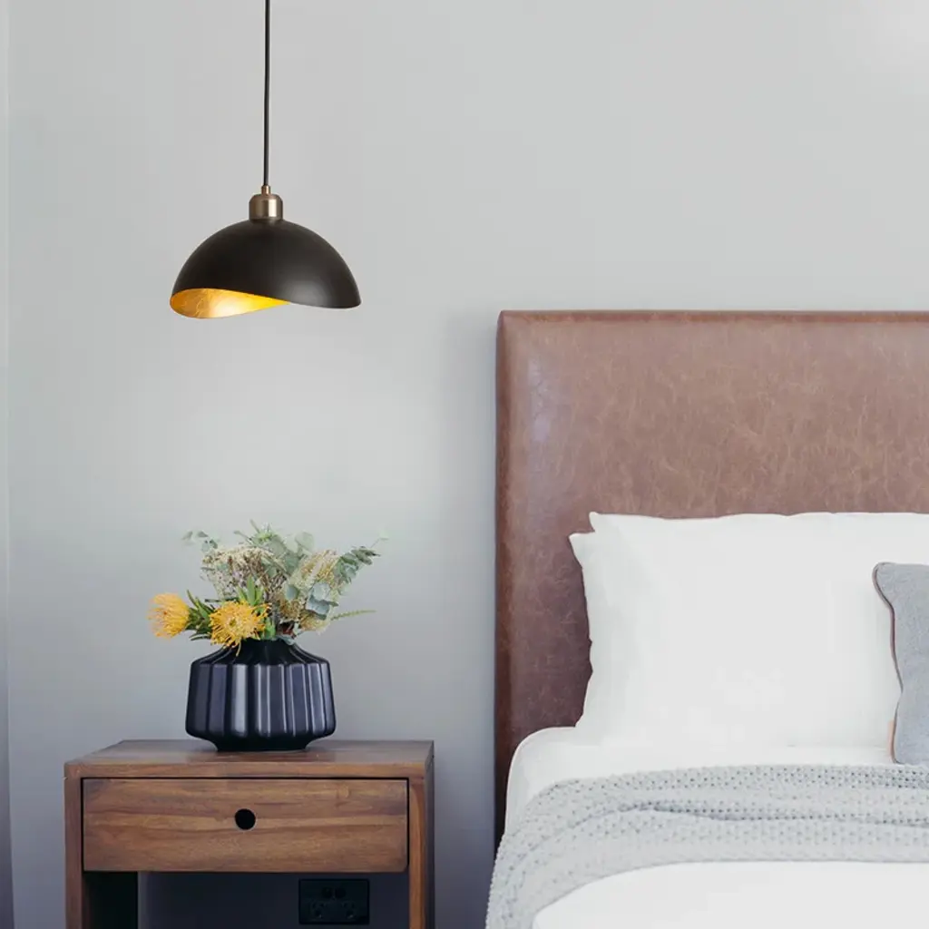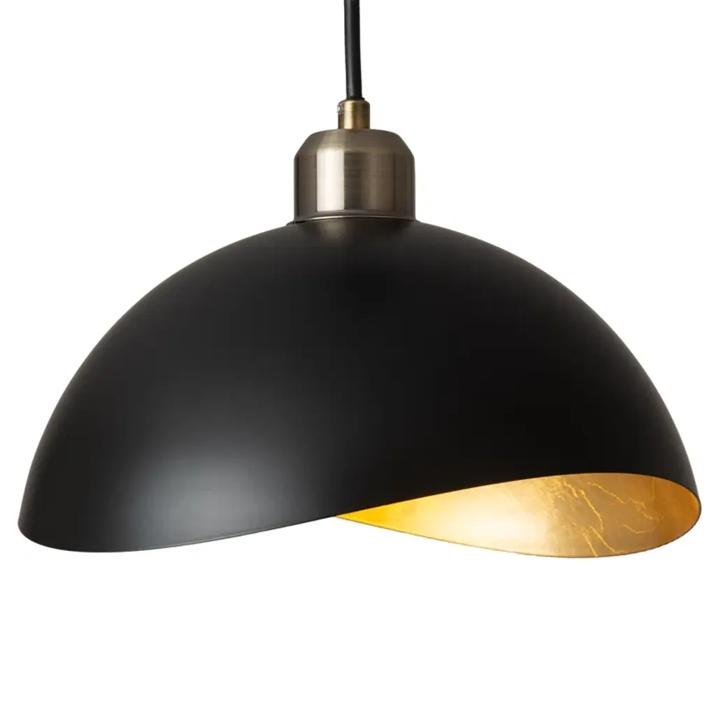 Add a touch of contemporary sophistication to your home with the Luna Bella Pendant light in matte black and weathered brass, featuring a hand-applied gold leaf finish on the inside of the shade. The perfect blend of modern chic and timeless elegance, this pendant light elevates any room with its striking design and warm, ambient glow. Illuminate Your Space with the timeless elegance of the Luna Bella Pendant light.