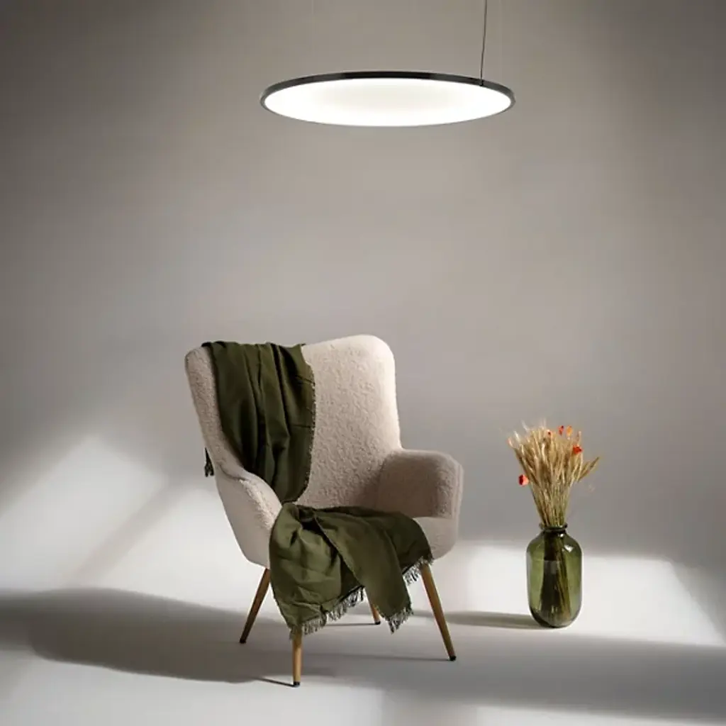 The Luna Horizontal LED Pendant from Andcosta is expertly crafted in Italy. It showcases simple geometry. Designed by Carlo Zerbaro, this pendant is circularly shaped and boasts a horizontal orientation. It is composed of aluminum for durability. It is illuminated by an integrated LED. Its opal membrane diffuses the light throughout your space, enhancing visibility. Luna’s minimalistic form complements a variety of interiors, making it versatile. Adjust the brightness level with a separately sold 0-10V dimmer.