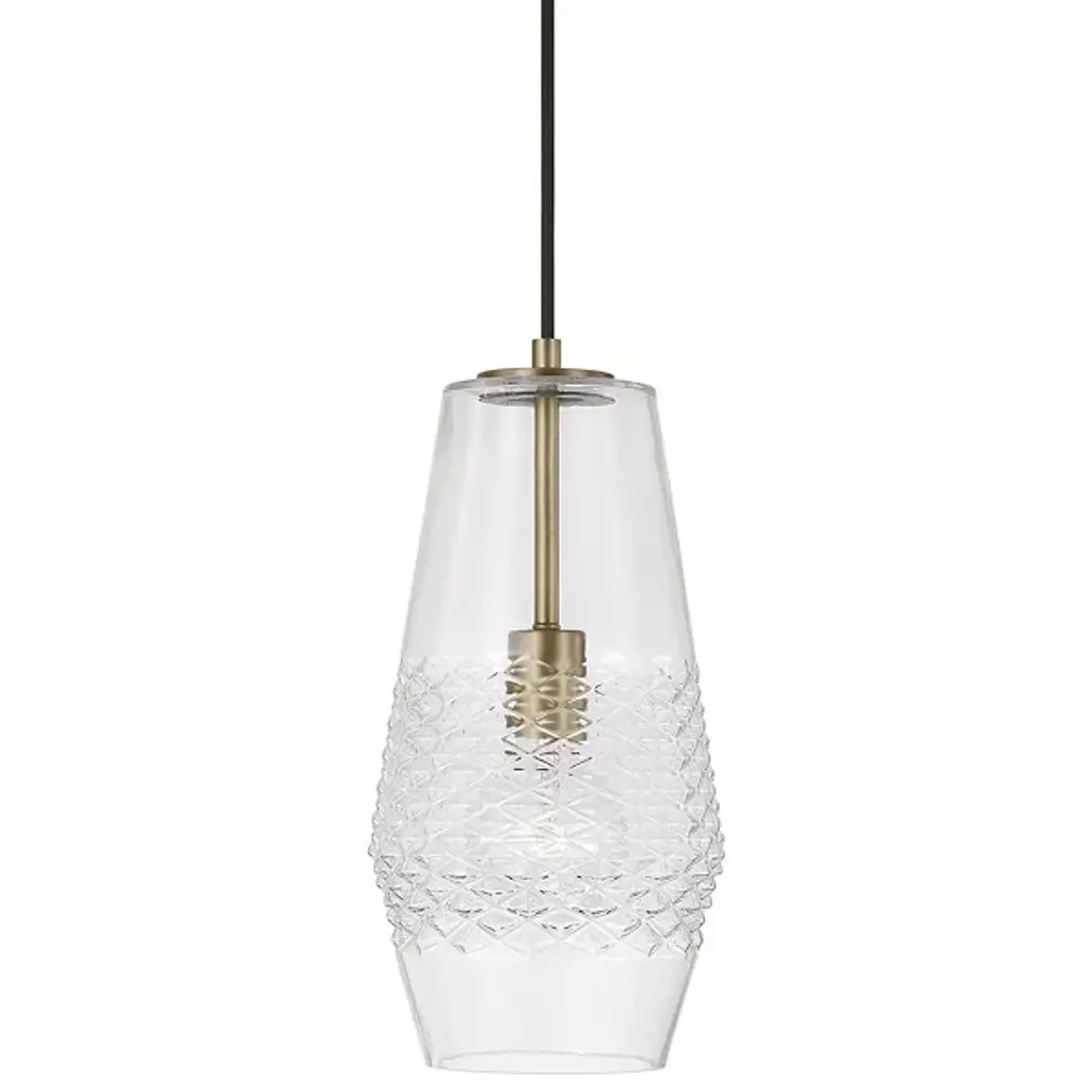 Make a stylish, moon-inspired addition to your inside living spaces with the LUNA Kaleido Large Pendant from Gabriel Scott. Descending from a stepped circular canopy along a slender stem, it sets strong LED lamping beneath a cylindrical diffuser, while a textured, conical glass accent caps an inverted dome below. The multiple glass beads are hand-made and customizable, resembling jewelry beads on a short strand of string that mellows bright light through a series of tasteful textures.