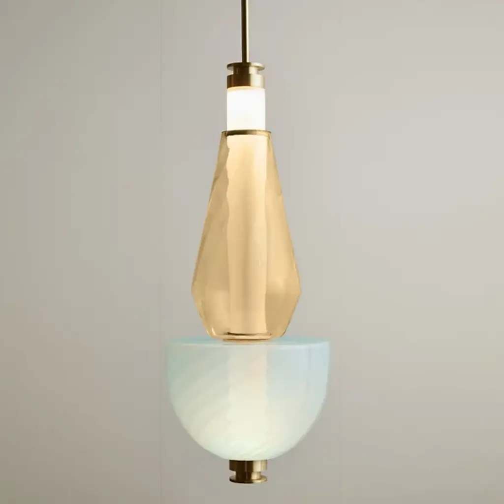 Make a stylish, moon-inspired addition to your inside living spaces with the LUNA Kaleido Large Pendant from Gabriel Scott. Descending from a stepped circular canopy along a slender stem, it sets strong LED lamping beneath a cylindrical diffuser, while a textured, conical glass accent caps an inverted dome below. The multiple glass beads are hand-made and customizable, resembling jewelry beads on a short strand of string that mellows bright light through a series of tasteful textures.