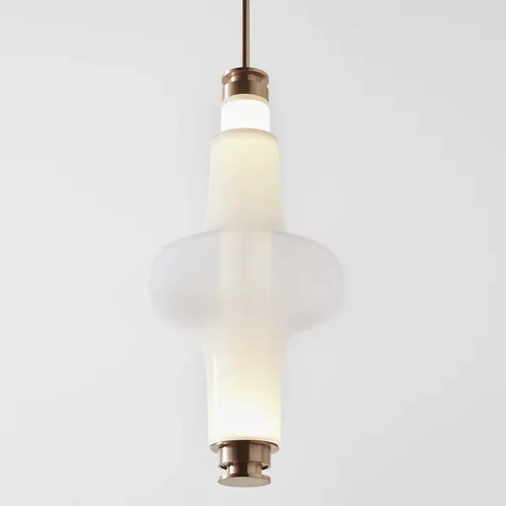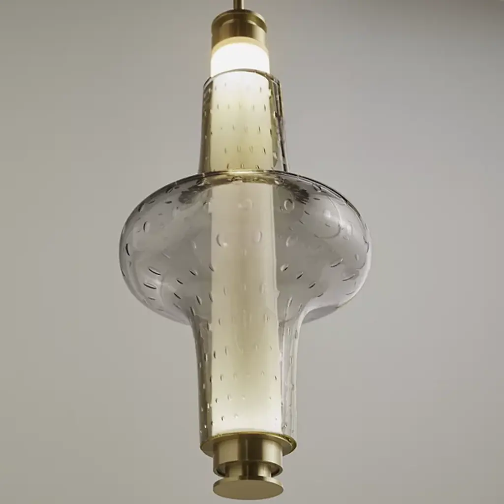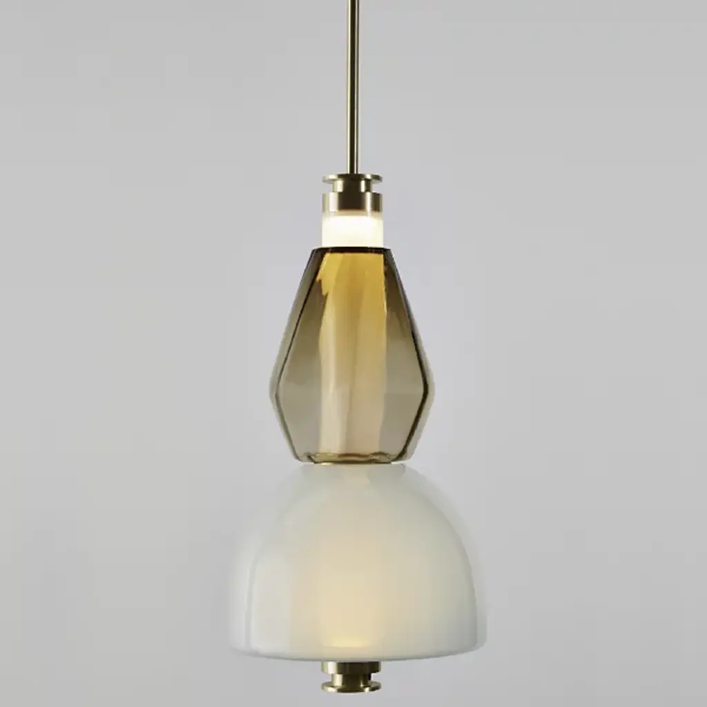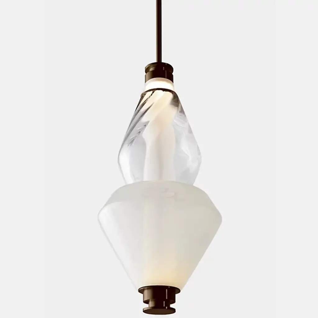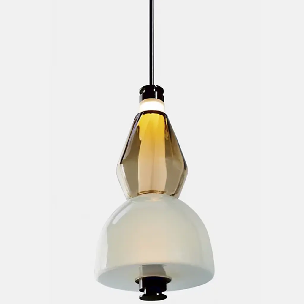 Bring elegance to your interiors with the decadent design of the LUNA Kaleido Small Pendant - B from Gabriel Scott. A stylish fixture created in honor of the lunar halo, it uses a robust steel canopy and single downrod to suspend LED lamping beneath a cylindrical diffuser. Two beads of glass are threaded around the diffuser, hand-blown to order, juxtaposing a slender upward-pointing cone with a wider, inverted cone with a beveled top. The beads are available in a profusion of textures and colors, adding a rich individuality to their surroundings.