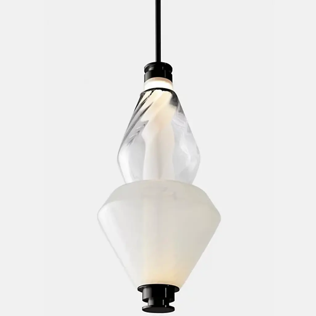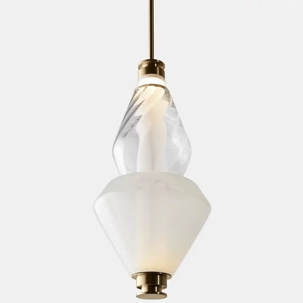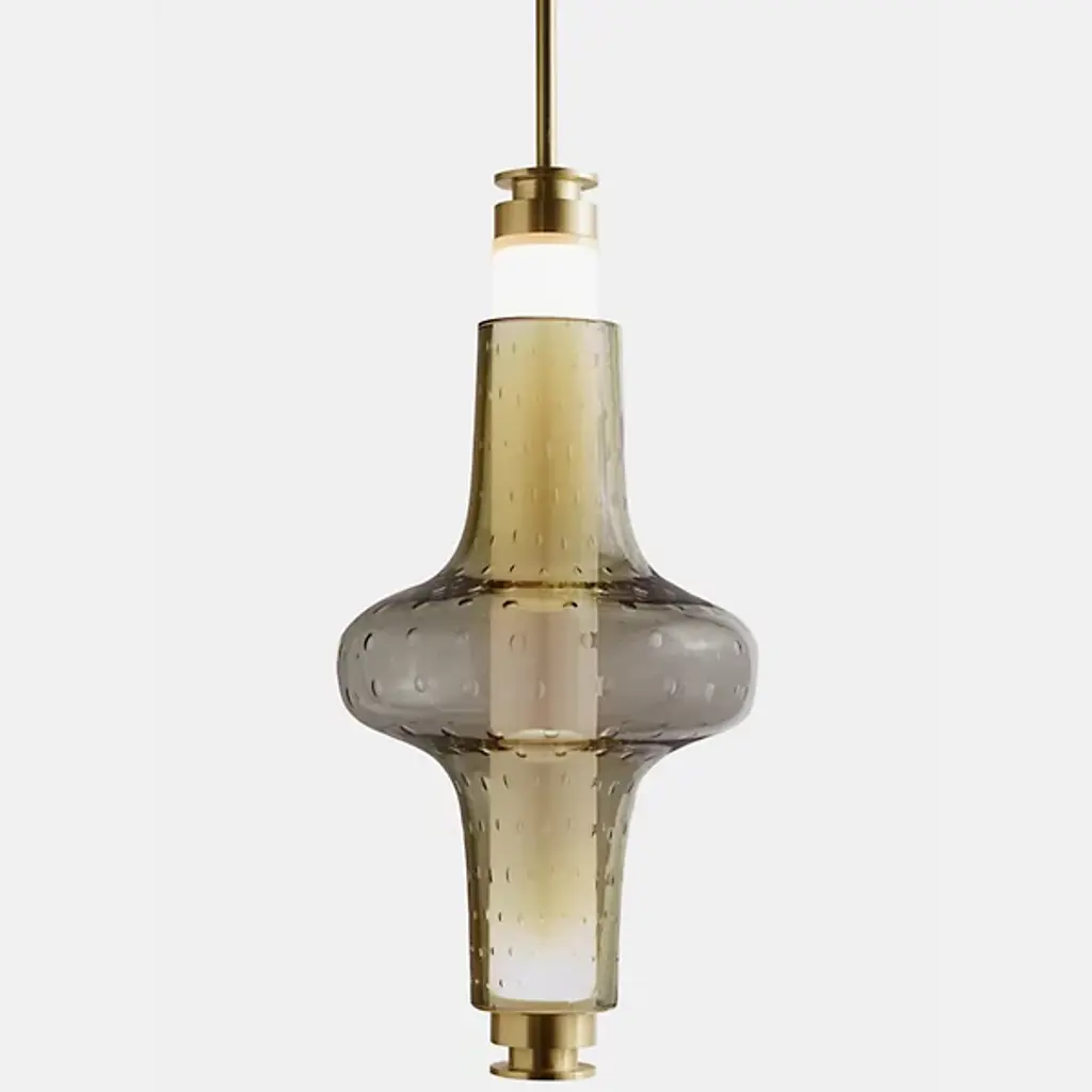 Bring elegance to your interiors with the decadent design of the LUNA Kaleido Small Pendant - B from Gabriel Scott. A stylish fixture created in honor of the lunar halo, it uses a robust steel canopy and single downrod to suspend LED lamping beneath a cylindrical diffuser. Two beads of glass are threaded around the diffuser, hand-blown to order, juxtaposing a slender upward-pointing cone with a wider, inverted cone with a beveled top. The beads are available in a profusion of textures and colors, adding a rich individuality to their surroundings.