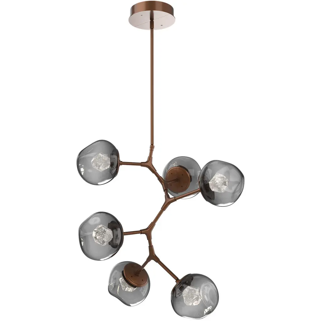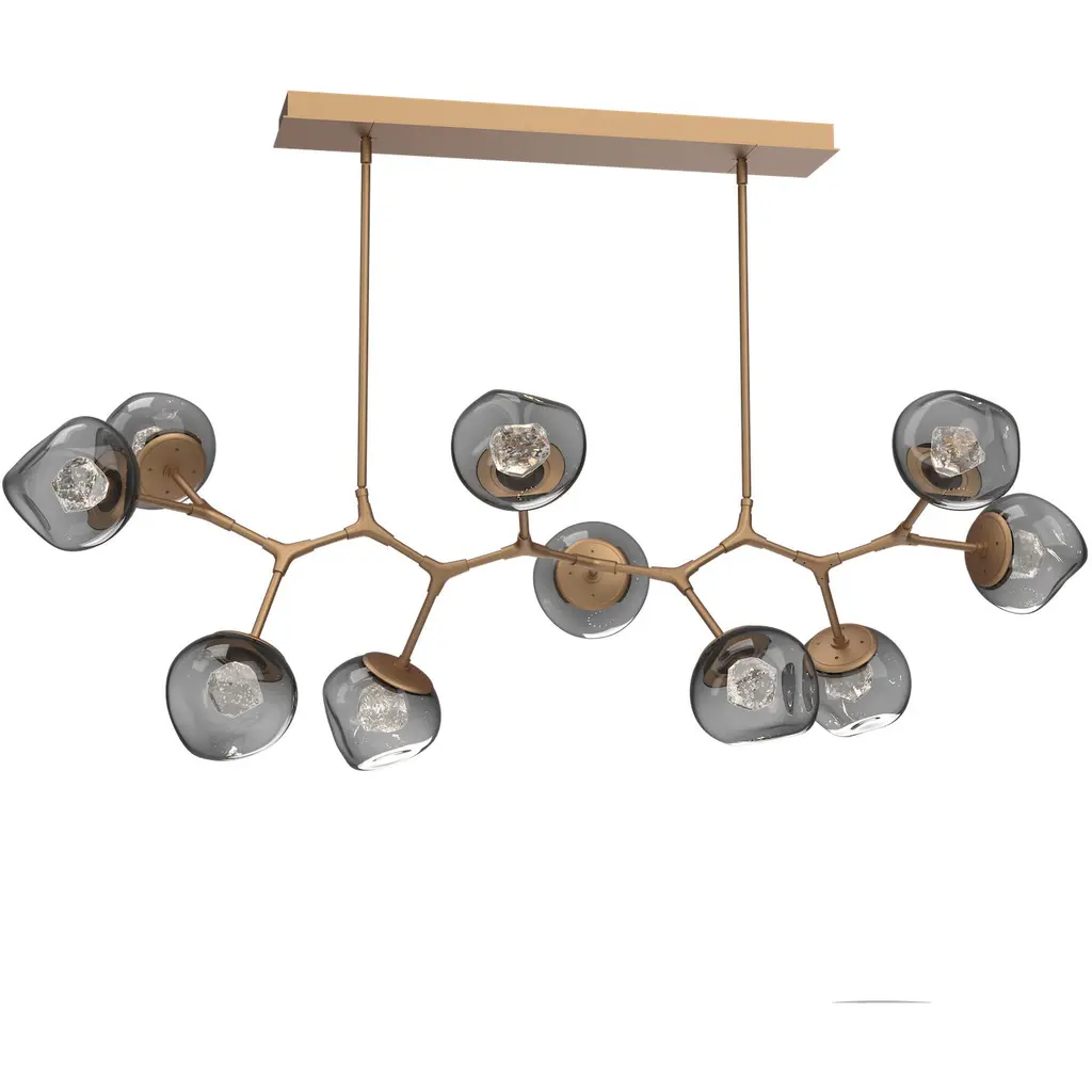 Luna Led Burnished Bronze Linear Pendant Ceiling Light In 2700k Led, Zircon Inner - Smoke Outer, Modern Branch