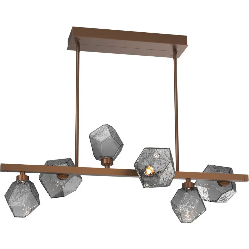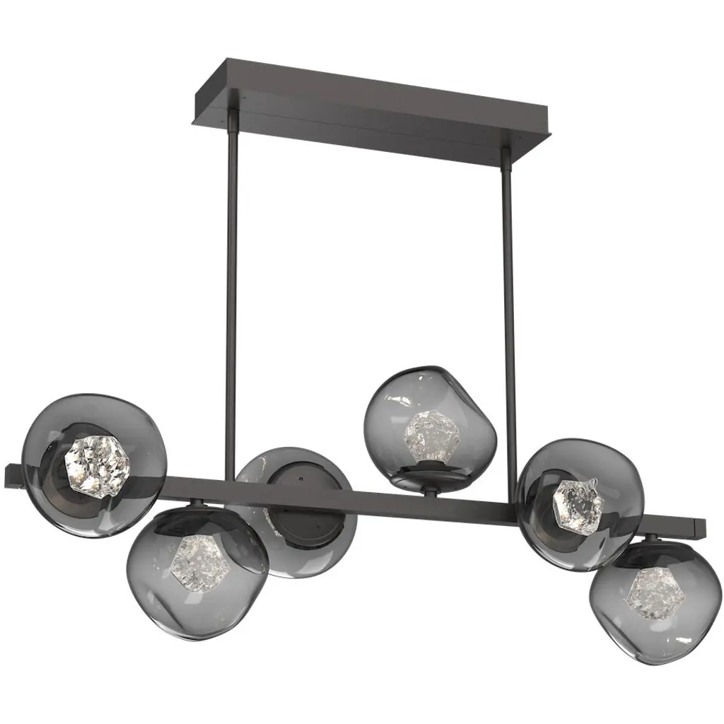 Luna Led Flat Bronze Linear Pendant Ceiling Light In 2700k Led, Zircon Inner - Smoke Outer, Twisted Branch