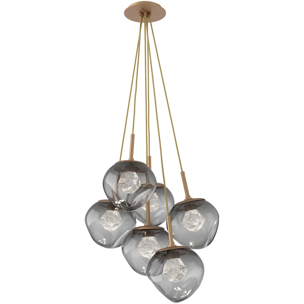 Luna 6pc Cluster - Burnished Bronze - Flat Bronze - Zircon Inner - Smoke Outer - Cloth Braided Cord - LED - 3000K