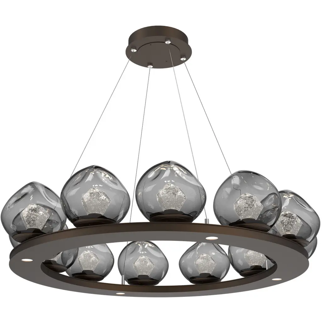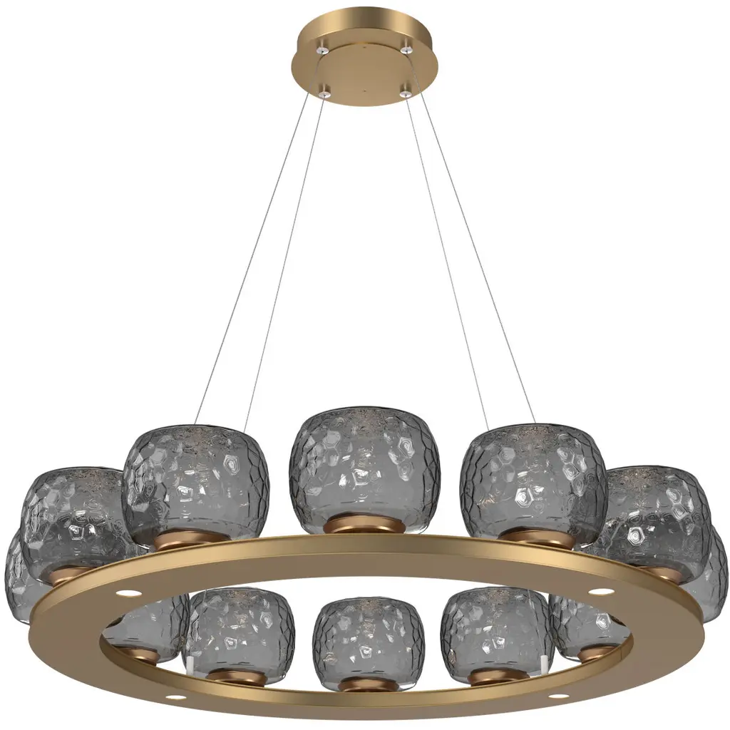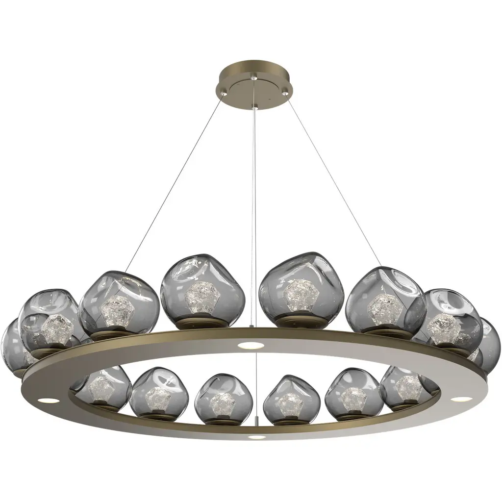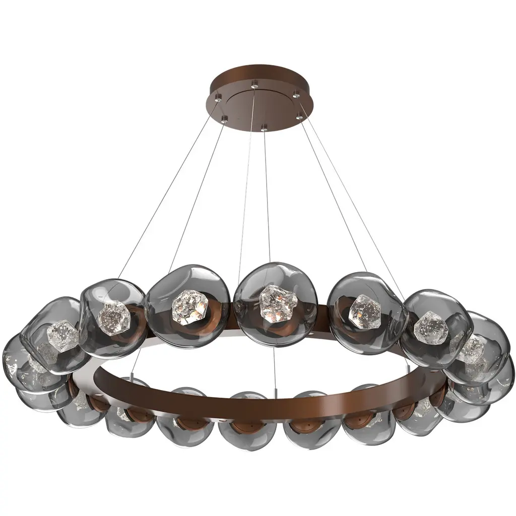Luna 48" Radial Ring - Burnished Bronze - Gilded Brass - Zircon Inner - Smoke Outer - Stainless Cable - LED - 2700K