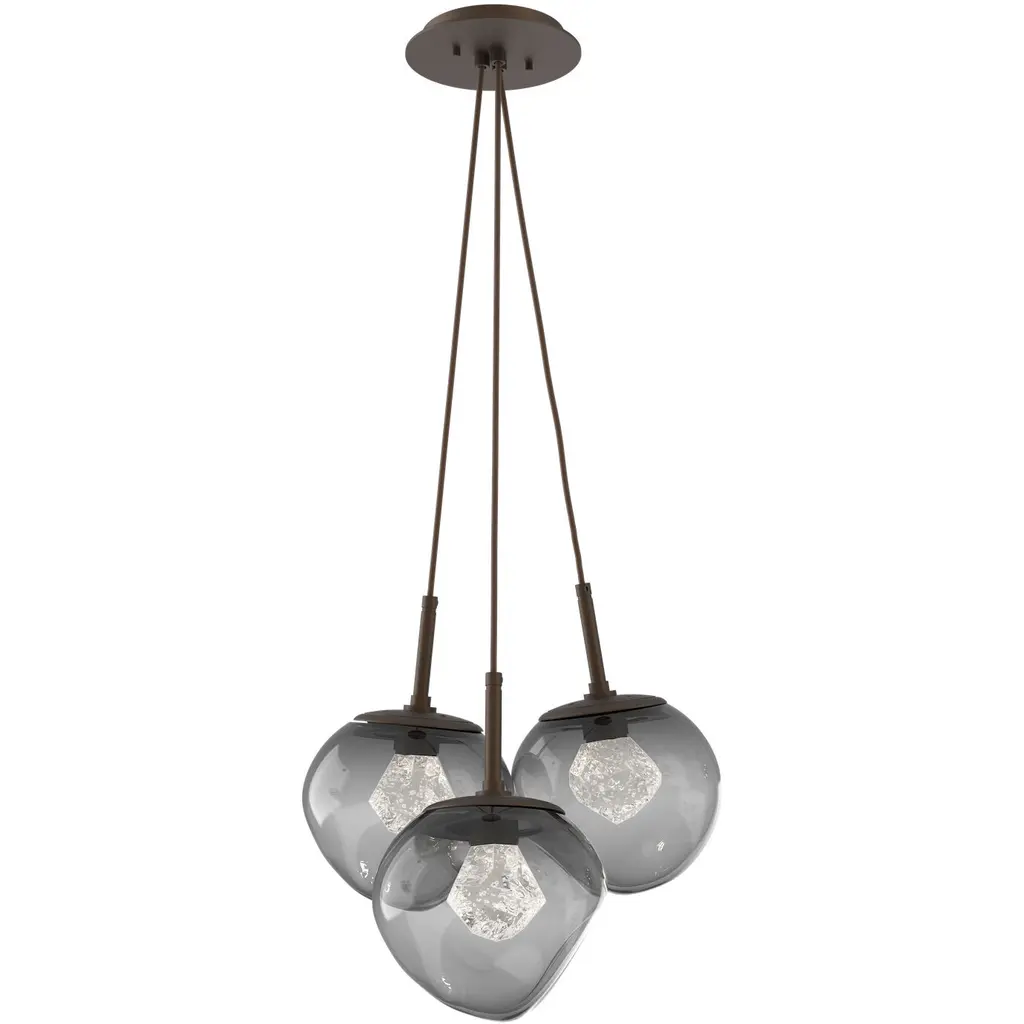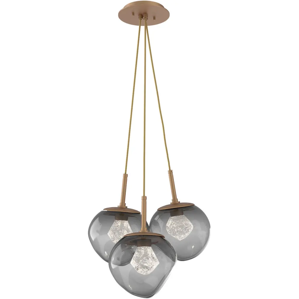 Luna 3pc Cluster - Burnished Bronze - Gilded Brass - Zircon Inner - Smoke Outer - Cloth Braided Cord - LED - 2700K