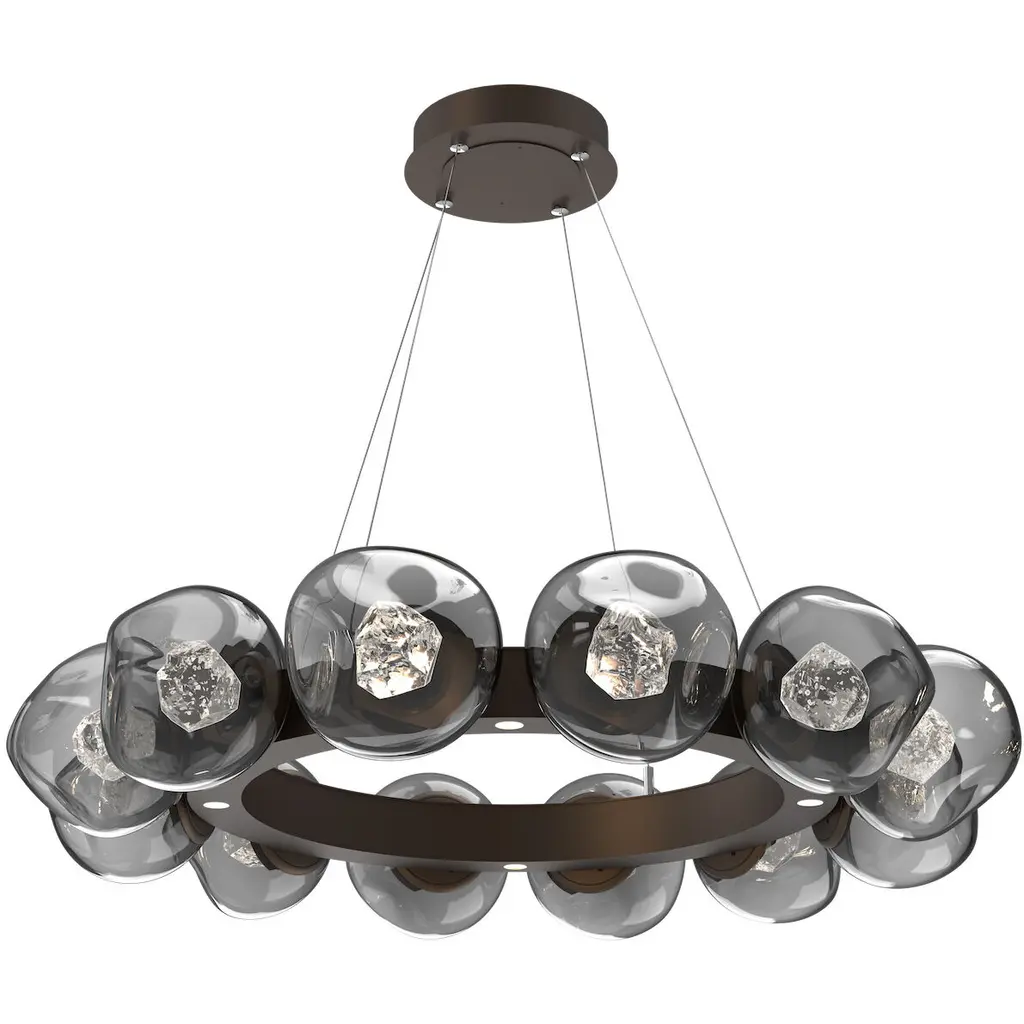 Luna 36" Radial Ring - Burnished Bronze - Matte Black - Zircon Inner - Smoke Outer - Stainless Cable - LED - 3000K