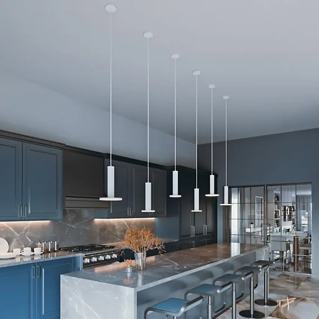 An ultra-modern way to brighten up your world. The design of the Luna LED Pendant by AFX was inspired by the look of a full moon in a clear, dark sky. Both the cylindrical LED housing and disc-shaped lens holder are made out of durable Steel. Set firmly within the disc holder, the moon-like White Acrylic lens works to both diffuse and expand the wash of bright downlight produced by the integrated LEDs within. The expansive yet still focused downlight makes this pendant light a great option for complementing and illuminating a modern kitchen island, dining table or other workspace.