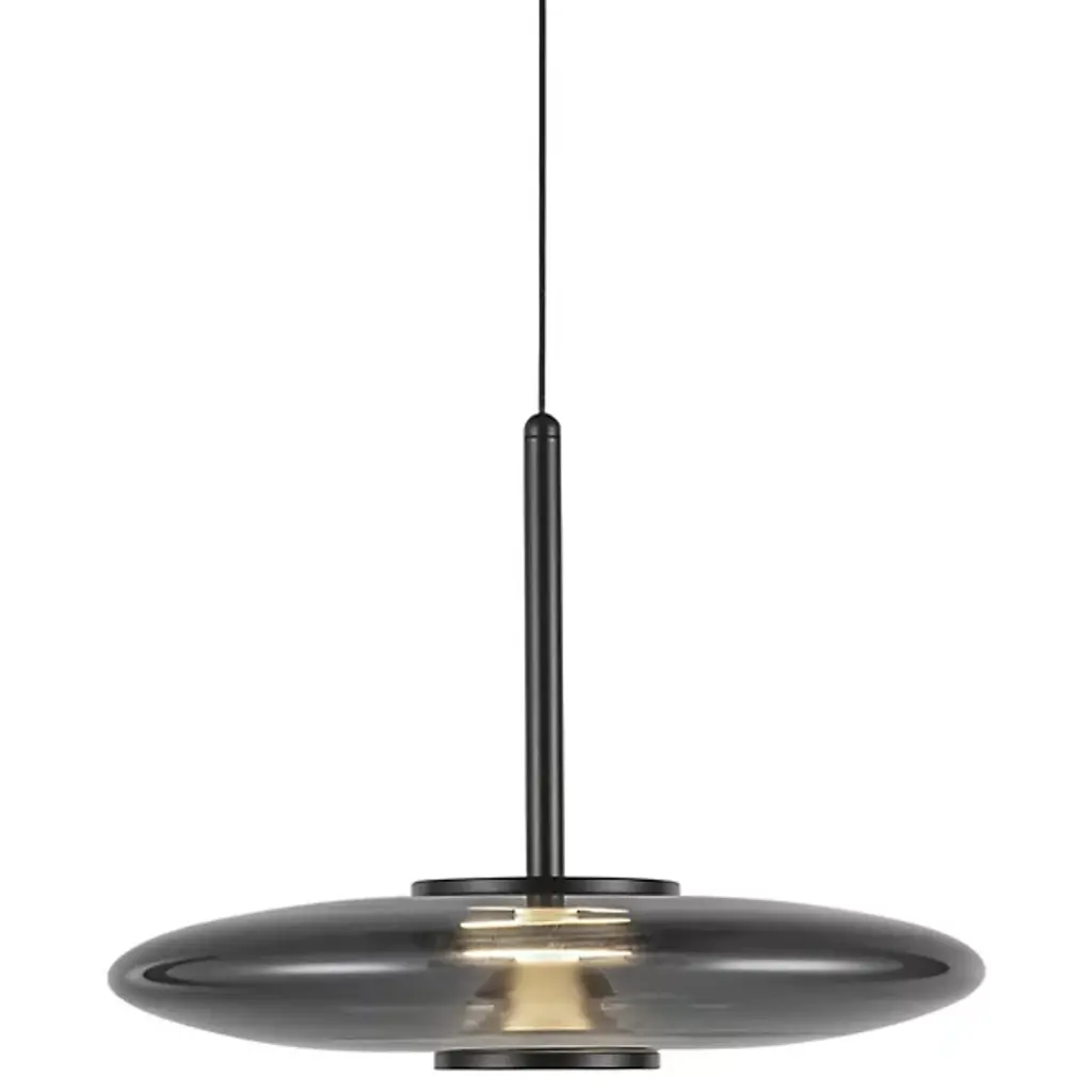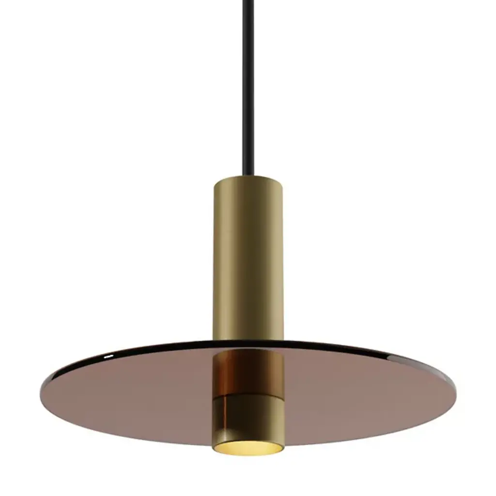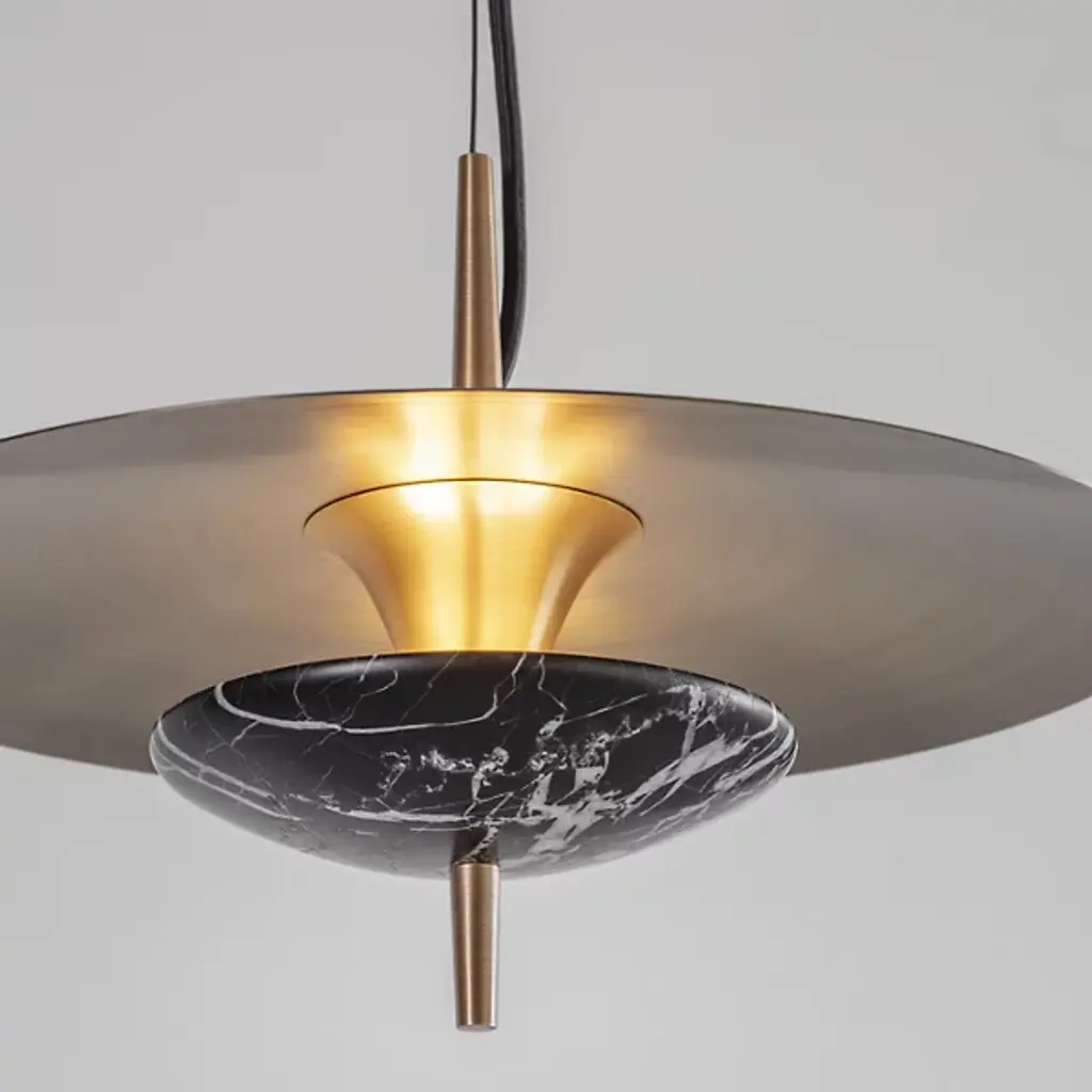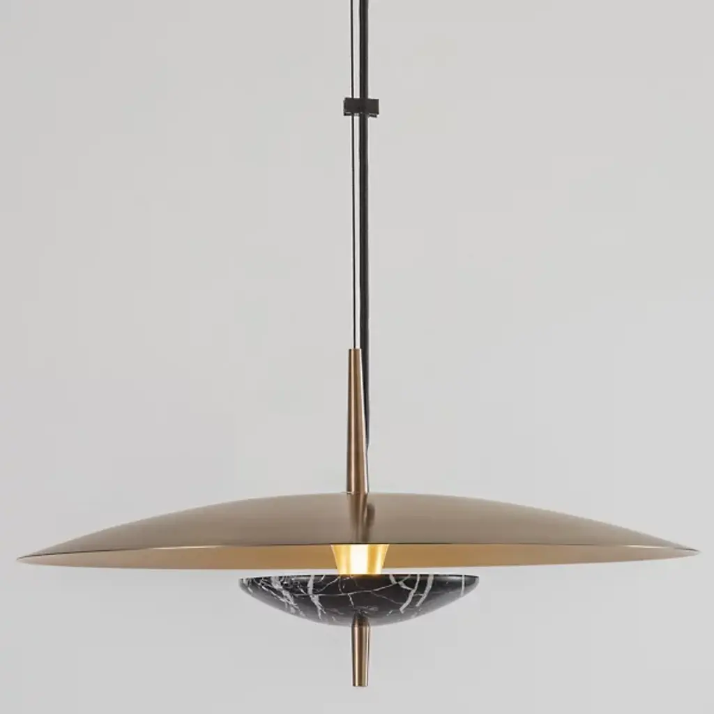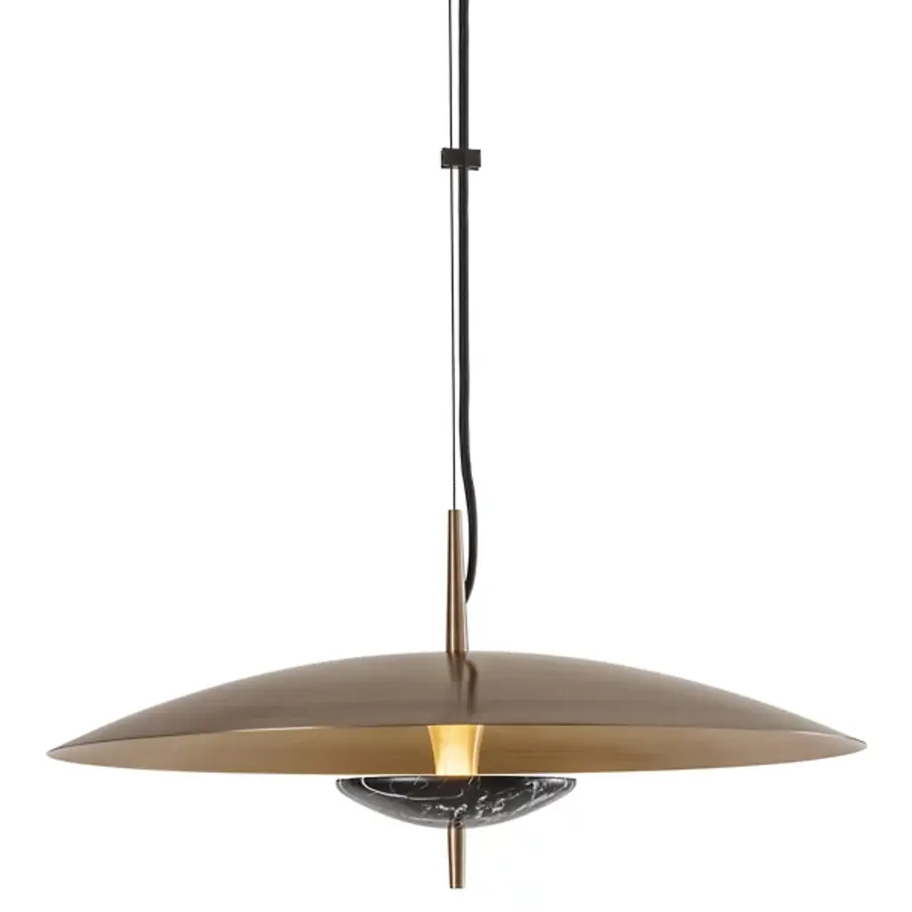Create a galactic aura within your living space. The Luna LED Pendant from J. Adams & Co. lives up to its name. An elegant shade of brass has been smoothened into a saucer formation to serve as the resting place for a luminous bulb. The shade’s flat surface allows light to easily emanate over your contemporary living arrangements. The bulb is encased by a pillar fixed between the underside of the saucer and the top of a carved stone plate. The plate of stone continues the theme of space exploration as the texture calls to mind the rocky surface of the moon.