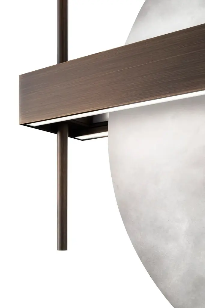 Luna Nuova is a LED suspension lamp made of alabaster and burnished metal.Light source:- LED 185 Watt - 230 V - 8395 lumen - 2700 ° K- LED 140 Watt - 230 V - 6715 lumen - 2700 ° K