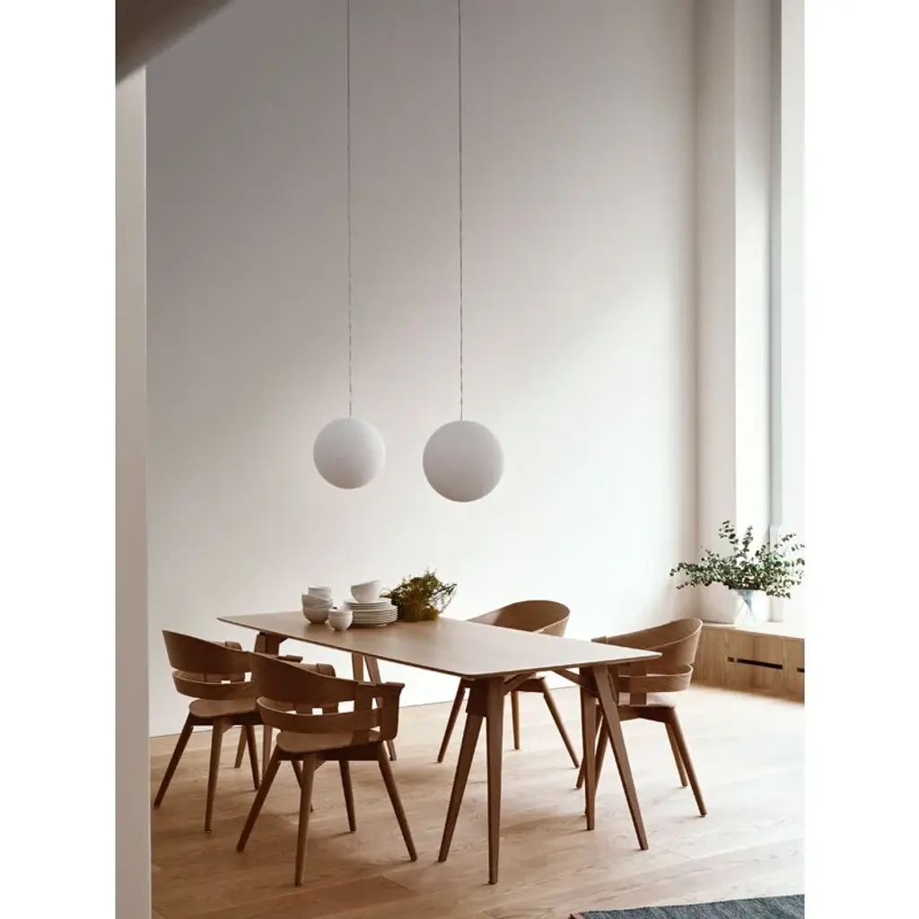 The Luna pendant light, designed by Alexander Lervik for Design House Stockholm, fills the space with pure, uninterrupted light and magical ambience of the full moon. There are already thousands of sphere-shaped pendants on the market, but Lervik’s ambitious aim was to create an entirely new kind of round pendant lamp. Unlike most pendants, Luna doesn’t have any loose cables or plastic lids – its lampshade is entirely made of glass, and the hanging suspension mechanism is built into only one cord. The result is a minimalist, functional, and most definitely unique pendant lamp. For more graphic expression, combine Luna with the separately sold Kosmos hanger.