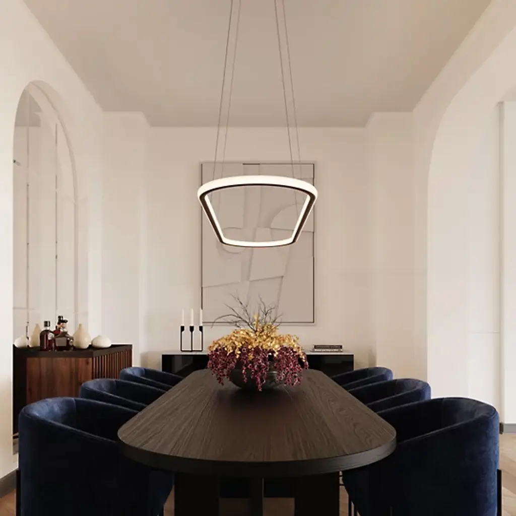 Meet the Luna Racetrack LED Pendant from SONNEMAN Lighting. This stylish racetrack design is perfect for dining room tables, board rooms and upscale settings. Its canopy-enclosed dual output driver power supply and dimmable functionality make it a versatile choice. The soft round profile and minimal cables allow for easy height adjustment. Enjoy vivid illumination that seems to catch the air with its delicately suspended cables. This exquisite pendant light makes a lasting impression.