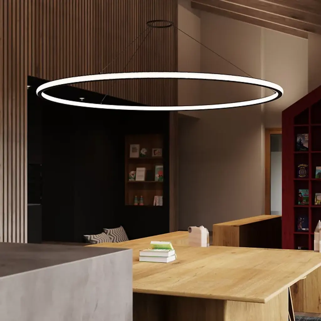 Creating a delightfully warm and comforting interior atmosphere starts with exceptional lighting from the Sonneman Luna Round LED Pendant. Sculpted in a unique circular shape, this overhead pendant releases ambient light from both the interior and exterior of the fixture. Held aloft by delicate cables, this integrated LED light fixture possesses a striking look that ties together the look of any room. Available in an array of finishes and sizes, you can find the fixture to fit your space. Use this dynamic pendant to add a new dimension to your kitchen and dining room space.