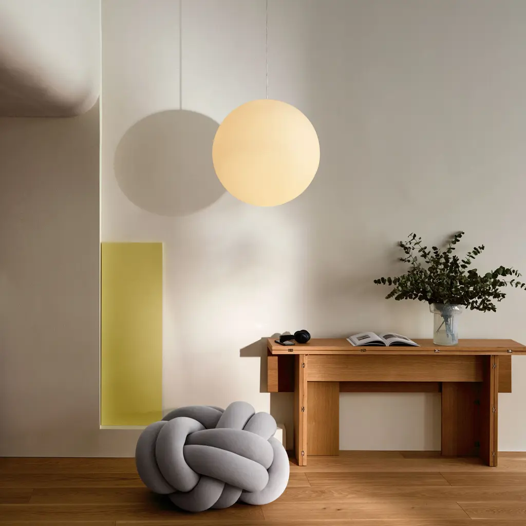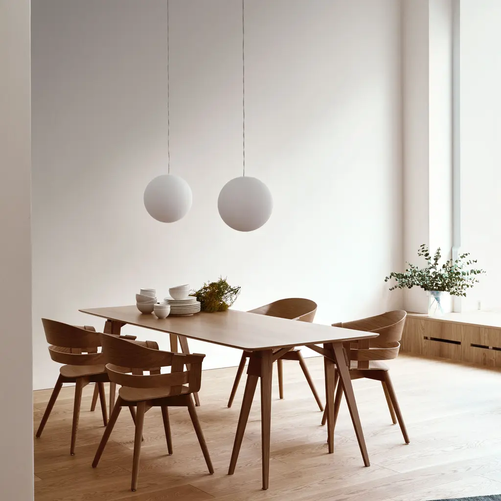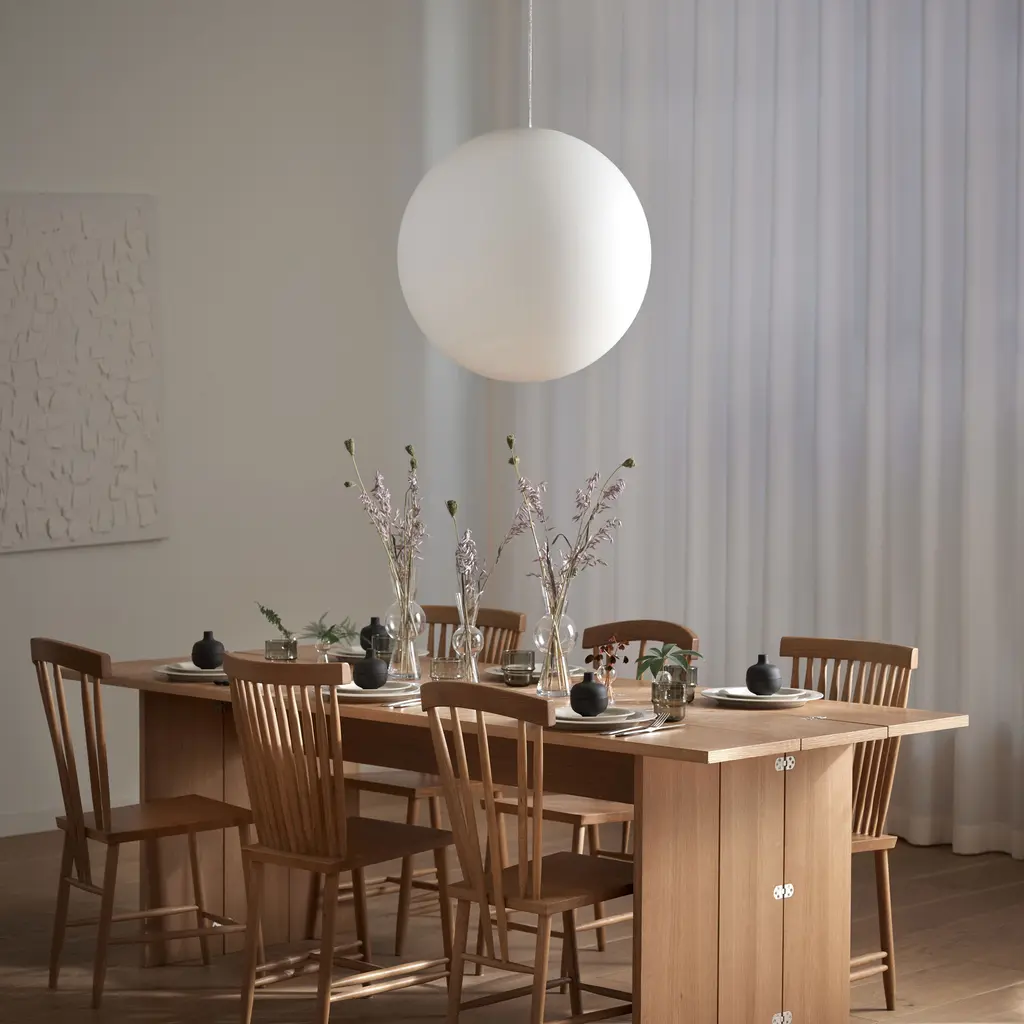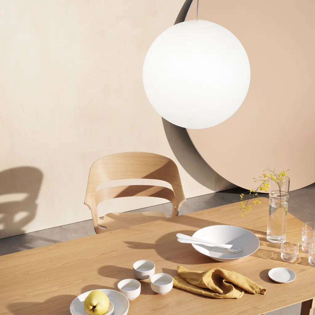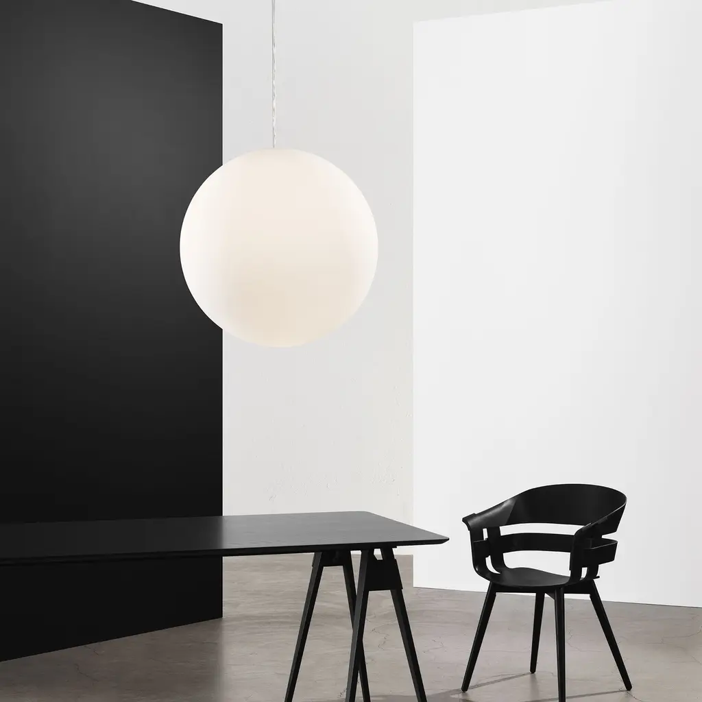 The quintessential white globe pendant light, Luna glows with a pure light and no shadows. Designer Alexander Lervik captured the essence of a glass globe, eliminating any superfluous details and fixtures to let the simple spherical shape shine. A slim steel cable with a PVC cover connects to the glass shade, keeping the minimal look intact. Made from mouth-blown opal glass, the pendant doesn’t cast any shadows. Instead, it illuminates with a bright, even light. Available in different sizes, the minimalist design suits both private and public spaces, from family dining rooms to restaurants.