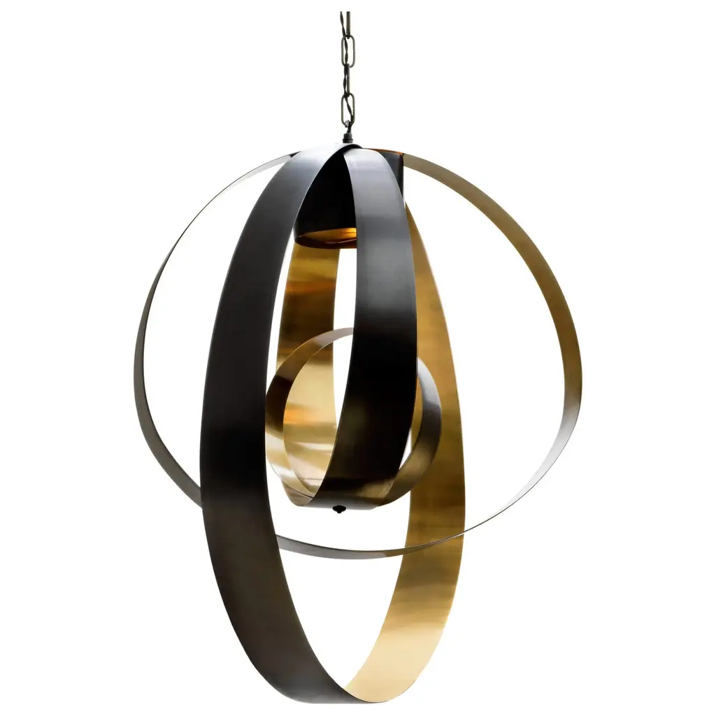 Lunar medium pendant by CTO lighting.Materials: bronze with satin brass and bronze oval chain with black braided flex.Dimensions: W 60 x D 40 x H 70 cmAll our lamps can be wired according to each country. If sold to the USA it will be wired for the USA for instance.Other sizes available.1 x GU10, 50w max (or 5.5w LED 2700k)weight 8kg (17.6lbs)supplied with 1000mm (39.4”) flex and chain of 1000mm (39.4”) as standard(adjustable on site)for installation a minimum chain drop 100mm (4”) is required,maximum 3000mm (118”)no bulbs suppliedmounts onto 4” junction boxFounded in 1998 by Chris and Clare Turner, CTO Lighting launched their first collection on the guiding principles of designing lights of uncompromising quality, using only the finest materials and working with elite British craftsmen. This collection of lighting symbolised elegance and the excellence of British design and manufacturing; the benchmark for all future collections.