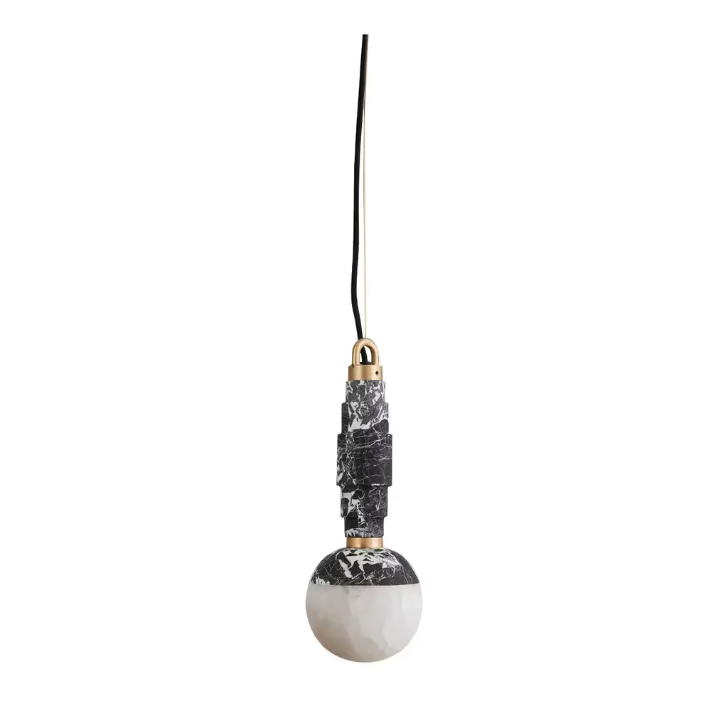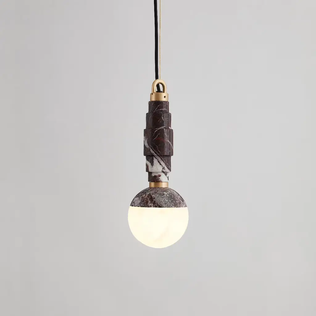 Lunar Pendant Lamp In Rosso Levanto Marble And Onyx