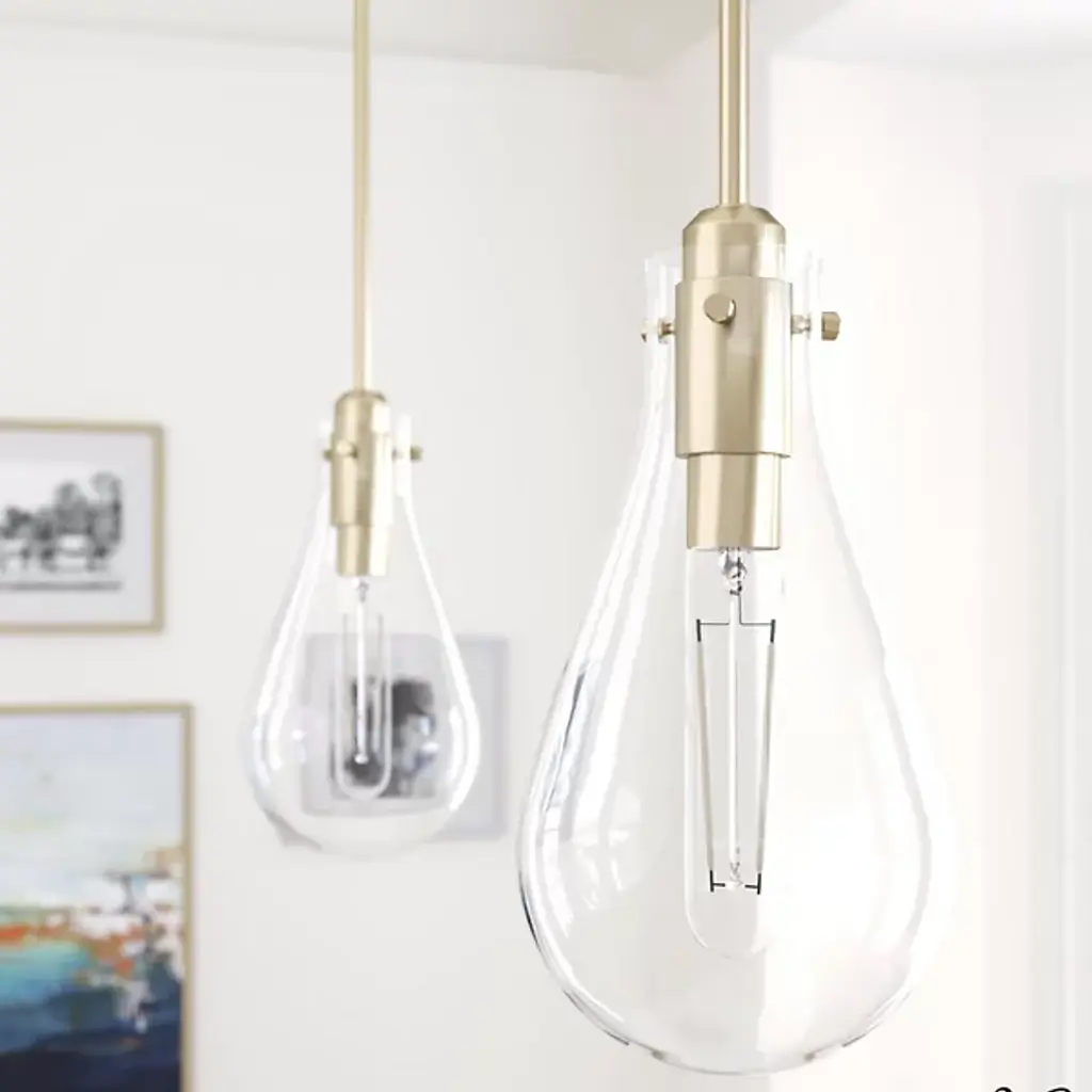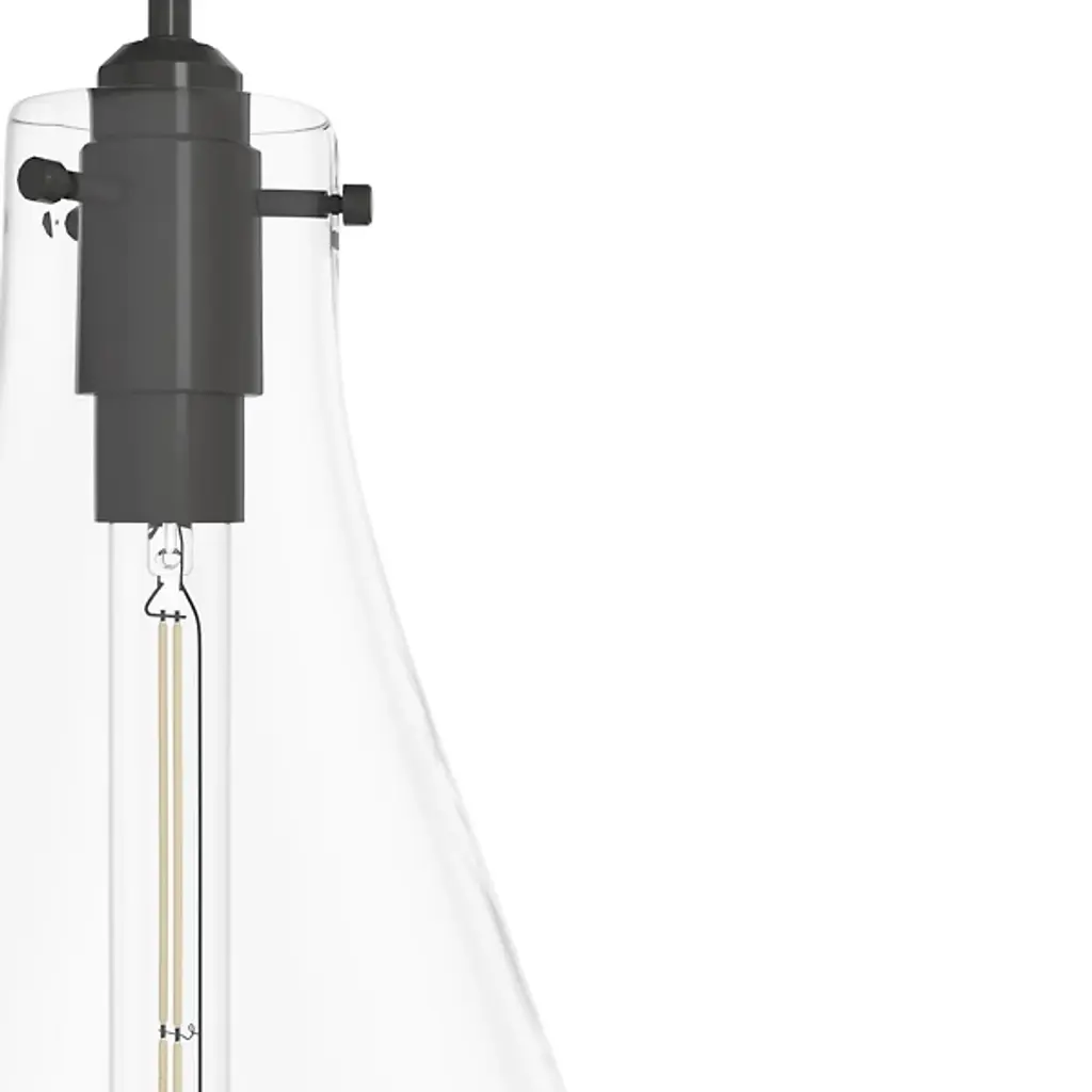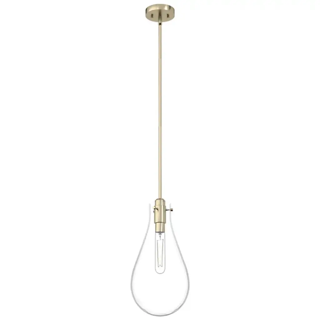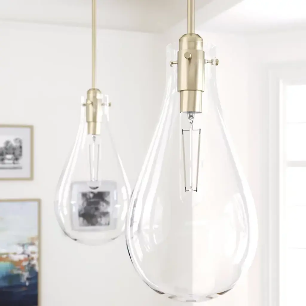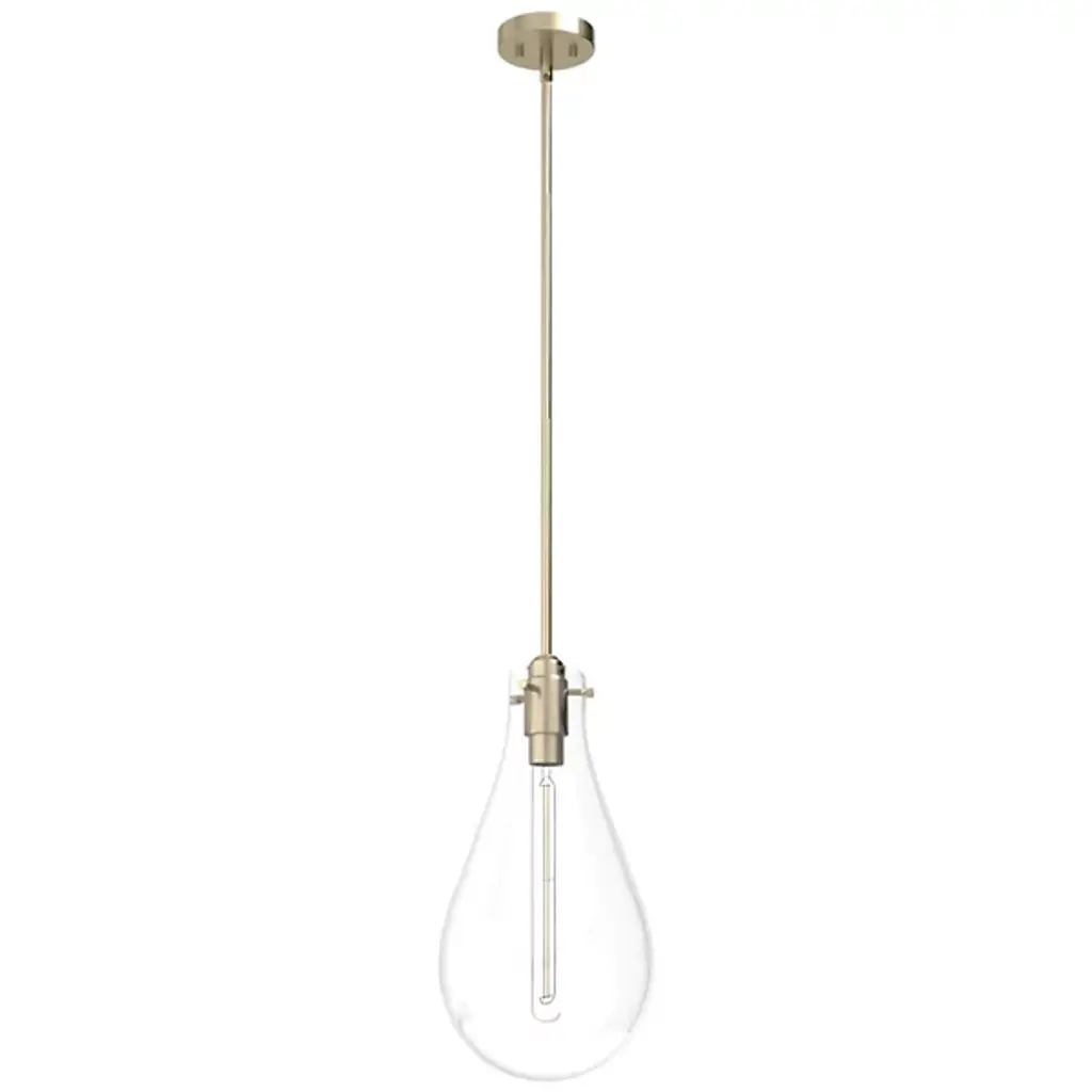 Seductive and suggestive. The Lundin Pendant from Hunter Fans brings a clean feeling to the room through its delicate silhouette and crisp, see-through light source. The contemporary design pairs beautifully with the refined setting. Its slender down rod suspension and compact canopy invite a series placement over a table. The eyes lock into the pendant's handsome metal hardware that suggests industrial lighting classics. A clear glass shade flows down with a rounded form evocative of the classic bulb. The actual bulb nestles inside, adding crisp reflections to the glass. The bulb's light glazes table surfaces below while producing an ambient glow.