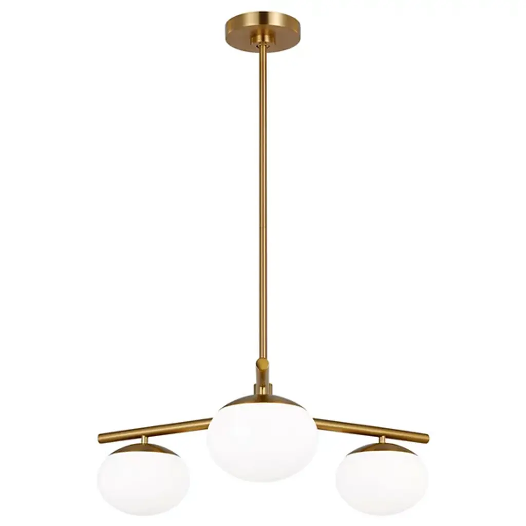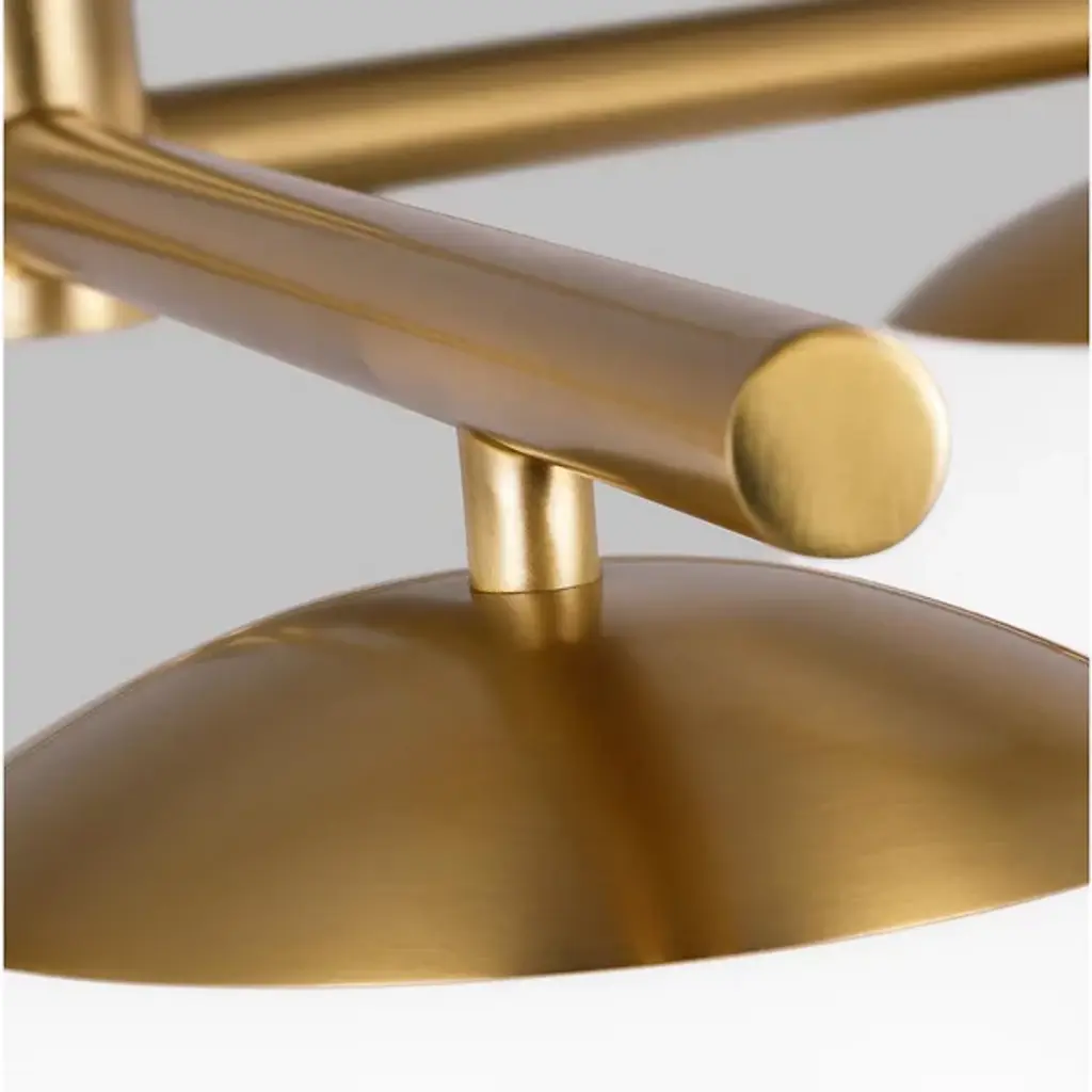 Presented by the iconic and influential Ellen Degeneres for ED, the Lune Semi-Flush Mount is inspired by mid-century modern design. A gorgeous milk glass shade nestles into the metallic fixtures and seems to suspend underneath the steel arms that sprout from the down rod. The structure hangs from the canopy above. This can be placed in standard dry interiors or damp locales, allowing this ultra-chic item to feature more versatility in placement options.
