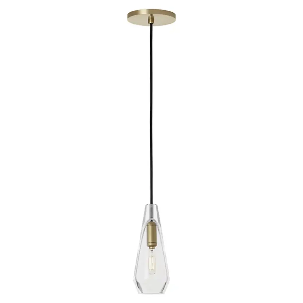 The Lustra Mini Pendant from Visual Comfort Modern reimagines traditional crystal teardrops with a contemporary twist. Designed by Sean Lavin, its pure optic crystal shade is hand-cut for a dual-faceted effect, setting it apart from classic illuminators. The thick, clear glass makes it a captivating focal point in any space. Despite its modest size, the Lustra Pendant is versatile, damp-listed, and delivers an ample glow, making it ideal for kitchens, bedrooms, and dining rooms. The conical optic crystal shade with a beveled base is suspended from a circular canopy by a slim cable to a single-cylinder socket. In contrast, an open base transmits a focused spot of downlight, adding a touch of airy style to your decor for versatility.