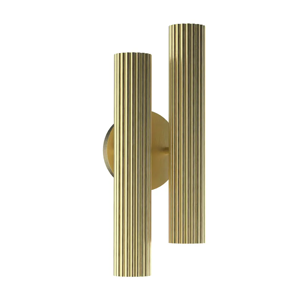 Inspired by fashionable decorative tinsel used on 18th-century apparel, this simple yet refined pendant lamp will infuse any interior with warm light. Handcrafted near Milan, the fashion capital of the world, it features a gold-finished textured cylindrical brass diffuser with vertical grooves, housing an LED 10 W bulb with 1000 lm flow. The lamp's supply is 230V 50Hz. The protection class is IP20, the color temperature is 3000K (available in 2700K on request), please contact the Concierge for details.