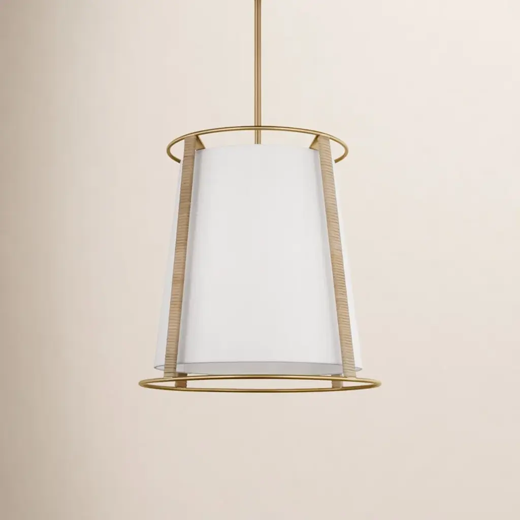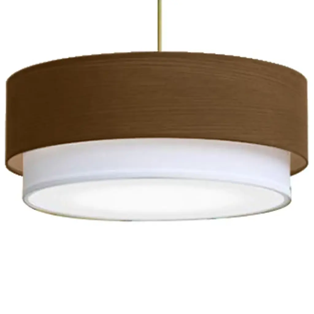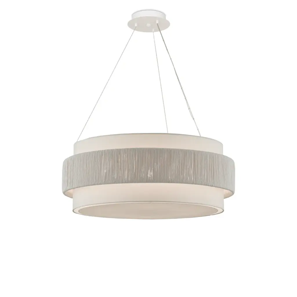 Composed with great precision, Luther Grande Pendant from Seascape Lamps takes simple geometry and doubles it up in a depth-filled design. Your living spaces will appreciate the low-profile quality of its metal canopy and the adjustability of its suspension. Like a pair of halos, two drum forms float alongside each other with an elegant contrast to their surfaces. The white linen shade accentuates the color and quality of the outer silk shade. An acrylic diffuser plate at the base wraps the piece up with its light mellowing properties. The piece catches pockets of ambient light while pushing out a grand aura of illumination.