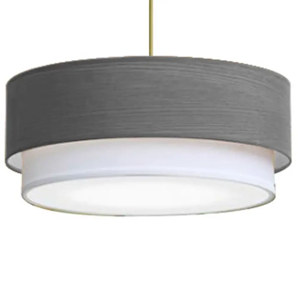 Composed with great precision, Luther Grande Pendant from Seascape Lamps takes simple geometry and doubles it up in a depth-filled design. Your living spaces will appreciate the low-profile quality of its metal canopy and the adjustability of its suspension. Like a pair of halos, two drum forms float alongside each other with an elegant contrast to their surfaces. The white linen shade accentuates the color and quality of the outer silk shade. An acrylic diffuser plate at the base wraps the piece up with its light mellowing properties. The piece catches pockets of ambient light while pushing out a grand aura of illumination.