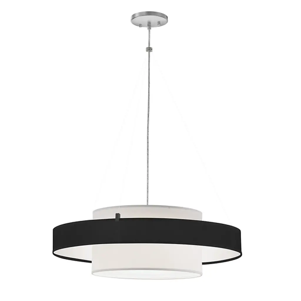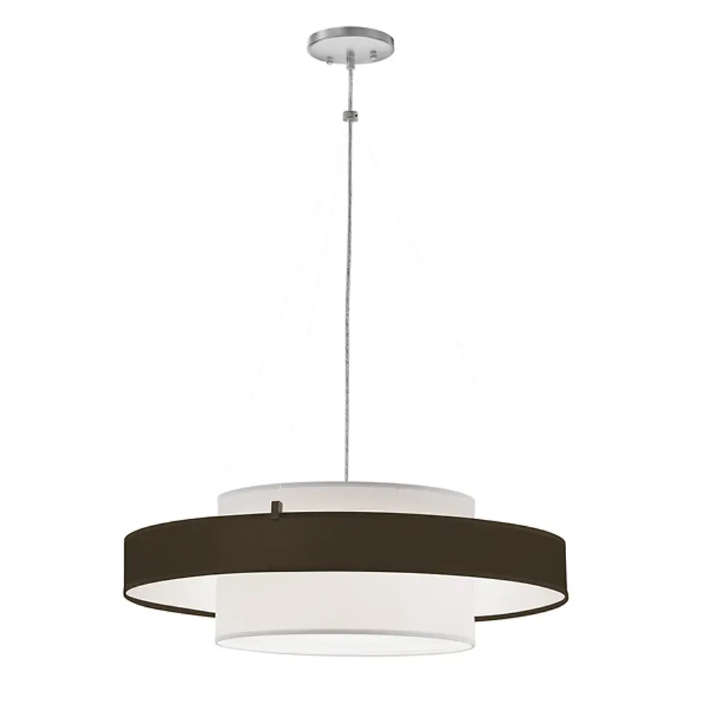 Introduce a soothing and inviting layer of light to your home or hospitality spaces with the Luther Grande Photo Veneer Pendant from Seascape Lamps. A large and welcoming modern piece, this oversized drum pendant hangs from a set of thin wires and consists of a set of rounded shades. The larger upper piece is made of smooth wood and gently nests the lower, fabric shade. Four bulbs rest within the material, emitting a bright glow through the acrylic diffuser that instantly shapes the atmosphere of the space around it.
