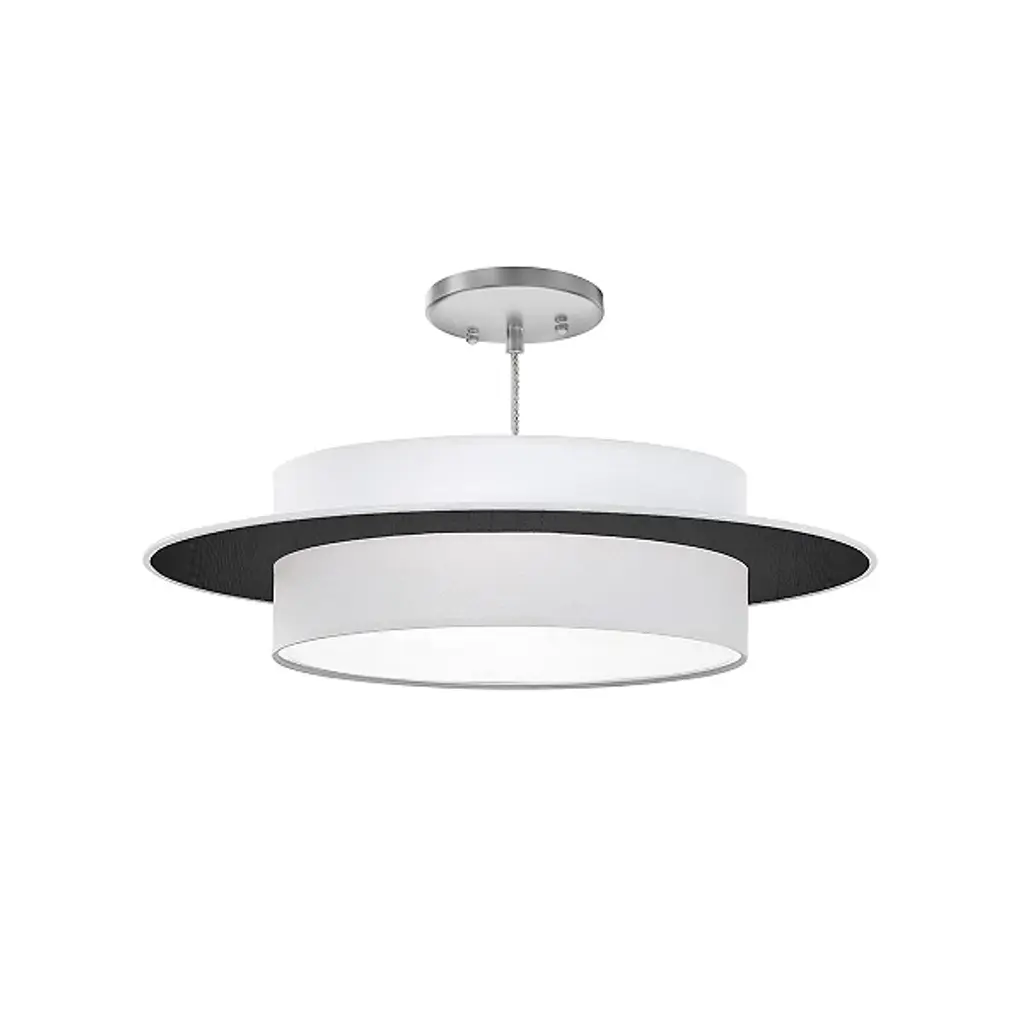 Complement your décor while lighting it up with the clean geometric design of the Luther Pendant from Seascape Lamps. It's a modern piece using depth and dimension to make its light feel for impactful. Driving these qualities is a neat composition of drum shades. Its inner white linen shade grounds the design with a neutral hue and a soft surface. The outer shade contrasts with its elegant silk construction. The linen, silk, and acrylic plate on the bottom work in unison to mellow down the bulb's light into a pleasant glare-free glow.