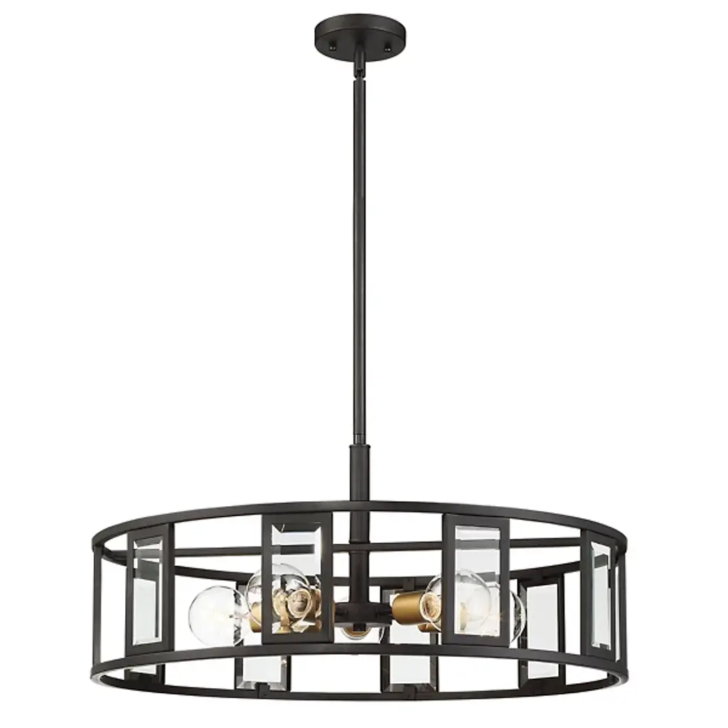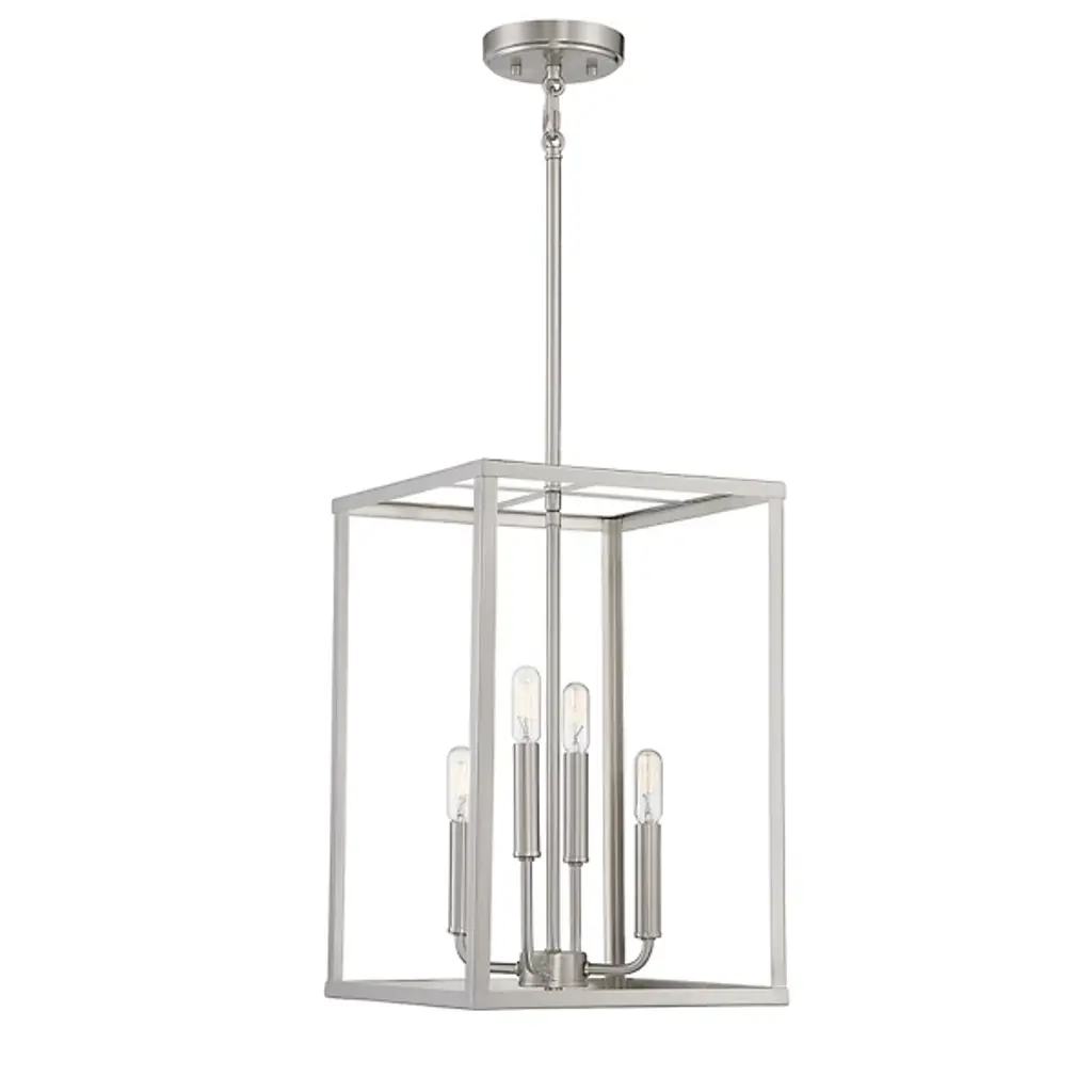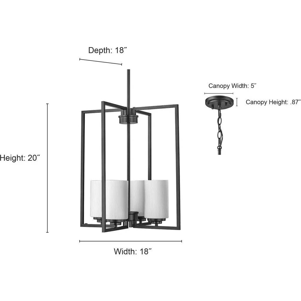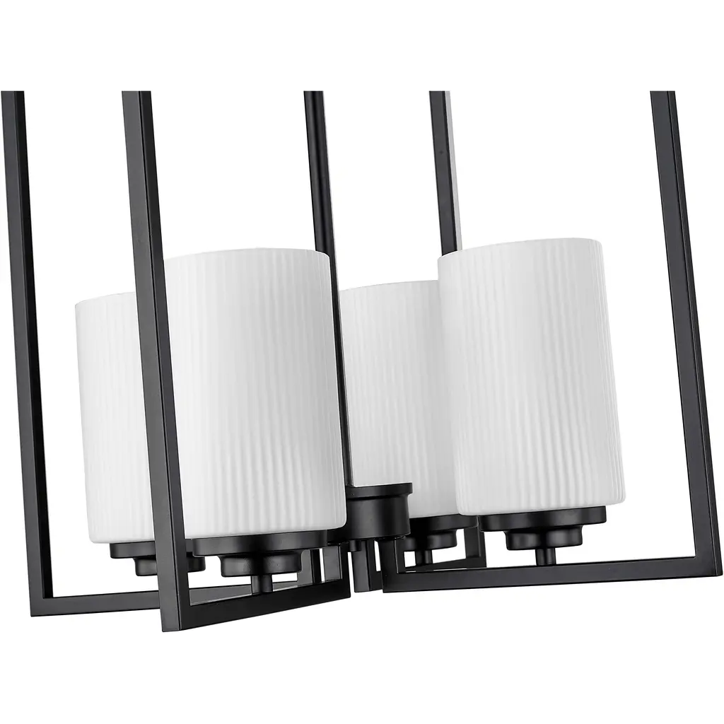 A true statement piece for any kitchen or entryway, the Luxx family of pendant lighting incorporates angular lines to provide a dramatic framework for the 4-lights and the ribbed etched, opal white glass globes. Available in either matte black or brushed nickel, the profile evokes a dramatic and contemporary homage to classic suspended-style lanterns.