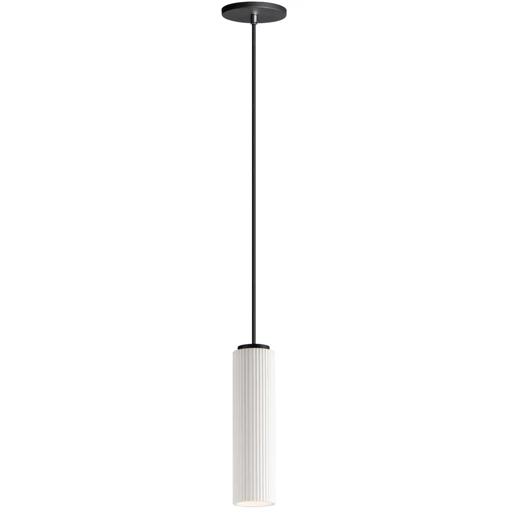 The Luzia Mini Pendant from Huxe is a contemporary fixture that seamlessly blends form and function. The cylindrical shape exudes modern elegance, making it a welcome addition to your space. Crafted from high-quality steel and aluminum, Reeds is held steadily by a slender downrod and is secured to a ceiling canopy. The ribbed glass shade adds texture and emanates a soft glow. Illuminated by an integrated LED, this pendant is dimmable with a separately sold ELV dimmer.