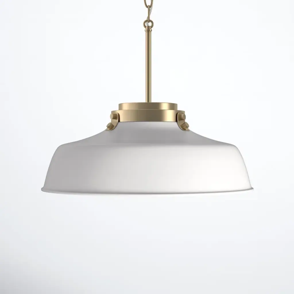 This sleek two-tone pendant light has a simple, clean-lined style that's easy to add almost anywhere. It's made from metal and hangs from a sloped ceiling-compatible canopy and a length of adjustable height downrod. The metal shade houses a single E26 bulb of up to 100W. Best of all, it's compatible with dimmer switches, so you can set the mood for elegant evenings, everyday dinners, and all the moments in between.
