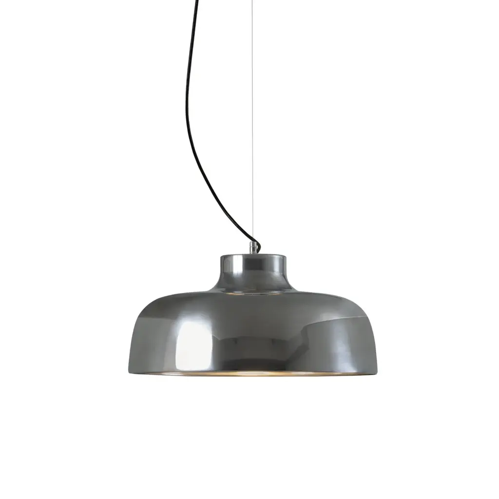 Charmingly, designer Miguel Milá said the evocative silhouette of his circa 1962 pendant was inspired by the shape of a woman's shoulders. In a series of vibrant choices—gloss red, matte black, or white as well as polished aluminum—M68 has a host of uses, most familiarly to light a dining table with its warm glow. Suspended from a fine steel wire with its cord running alongside, the fixture comes with a color-matched circular canopy.