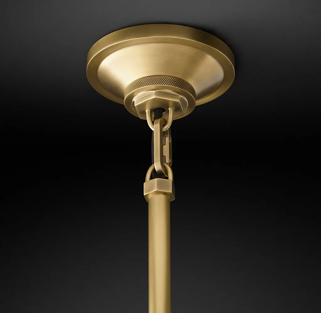 In an elevated spin on utility, our Machinist Pendant by Jonathan Browning is inspired by the functional fixtures used in workshops and factories throughout the mid 20th century. Bridging the line between heritage and modernity, the classic domed cloche shade is held in place by a sleek geometric metal yoke, whose precision craftsmanship is defined by crisp angles, diamond knurling and exposed bolts. SHOP THE ENTIRE COLLECTION