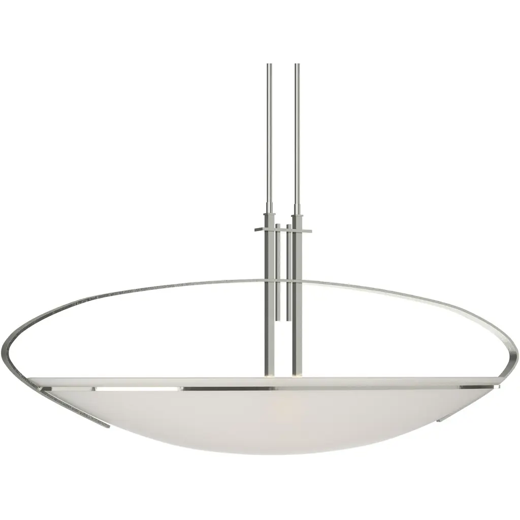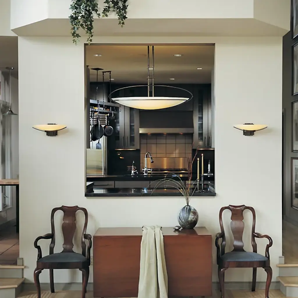Drawing inspiration from post-impressionist and Art Nouveau design. The Mackintosh Bowl Pendant from Hubbardton Forge provides a warm and inviting illumination and pays homage to the renowned architect Charles Rennie Mackintosh. Crafted by hand by skilled Vermont artisans upon receiving your order, this fixture features a metal body and Opal Glass shade that diffuses light for comfortable illumination. The metal bands give the product a dynamic look by swooping and sweeping around the bowl both vertically and horizontally.