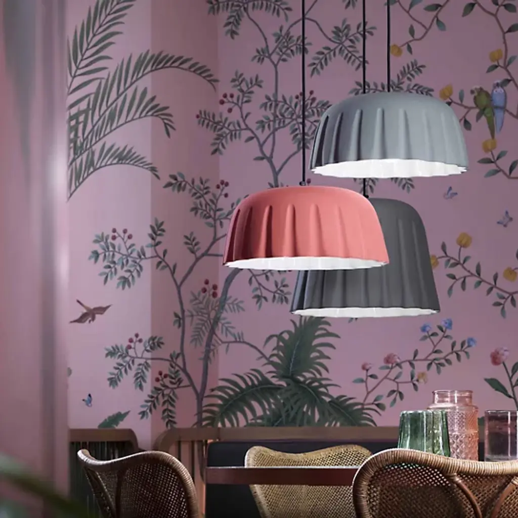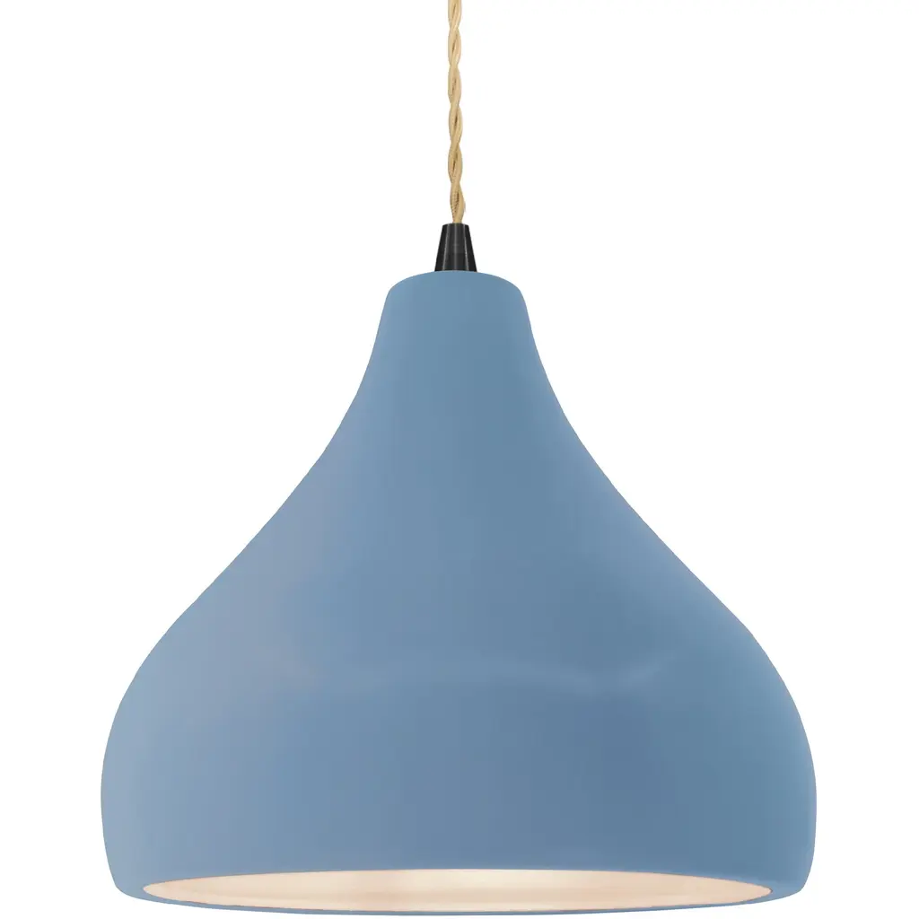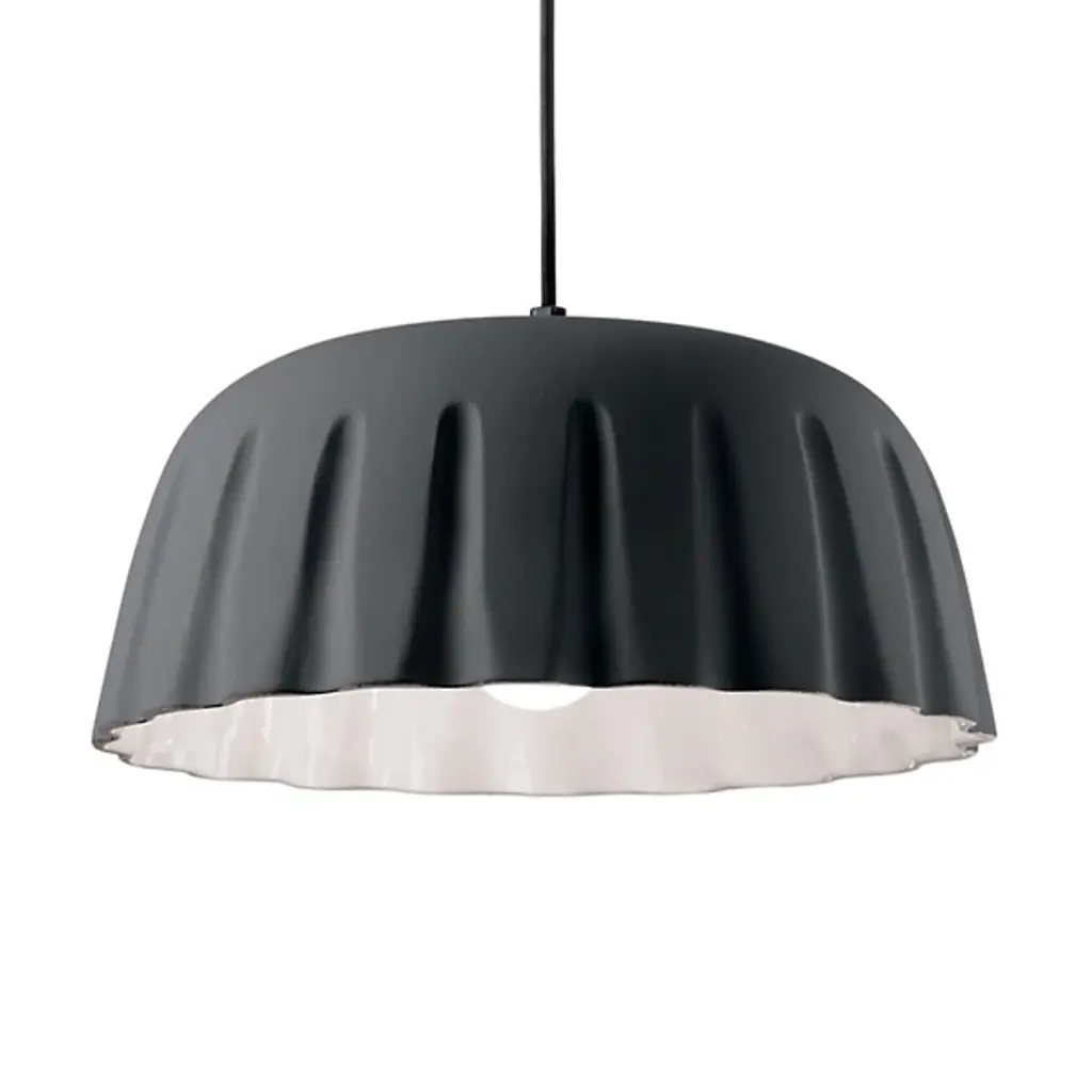 Ferroluce presents the Madame Gres Pendant. Handmade in Italy, this attractive and understated luminary features a vertical inlay and undulating surface that creates a distinctive look. Evoking the aesthetic of vintage stoneware, the ceramic bodice gives off warmth, and it has a pleated style around the perimeter with all the edges rounded in a pleasant curve. The illumination within the pendant flows from its aperture to animate décor and locales of choice.