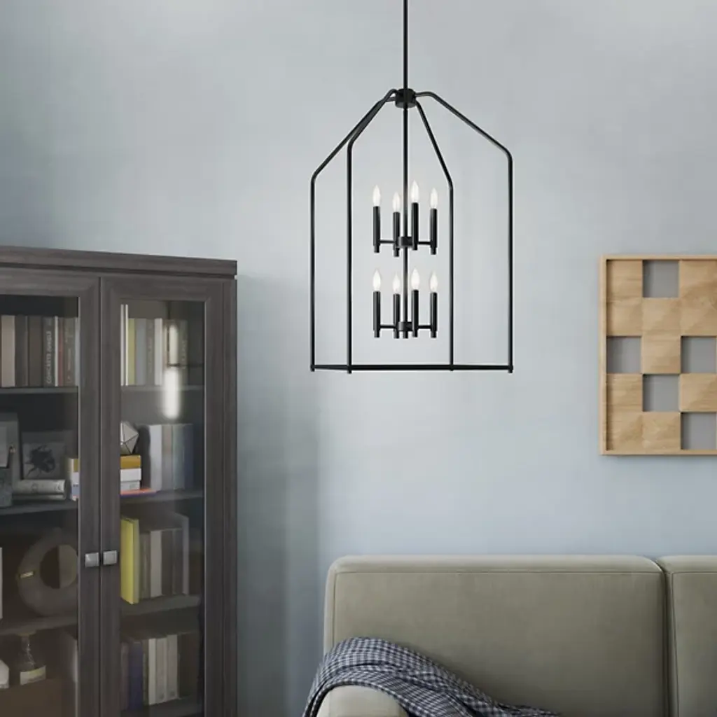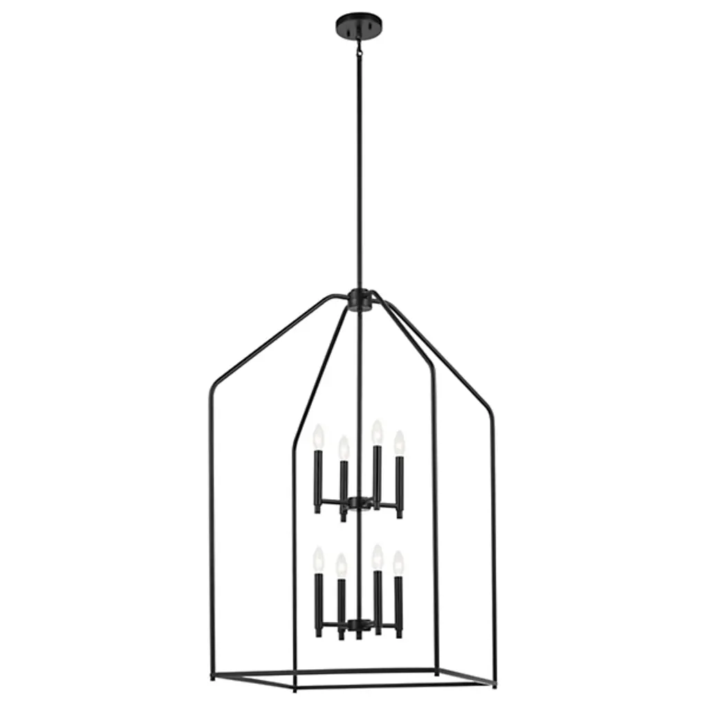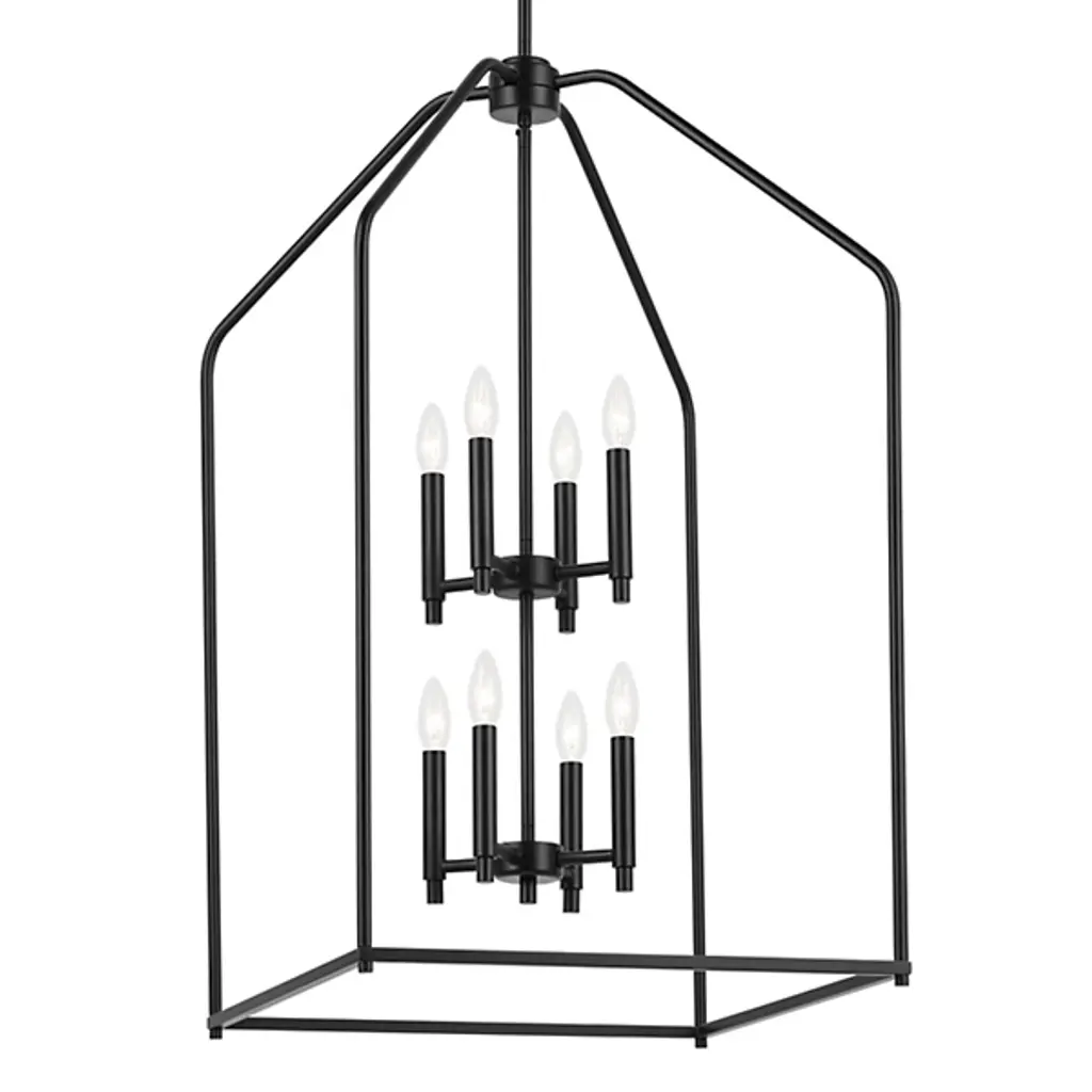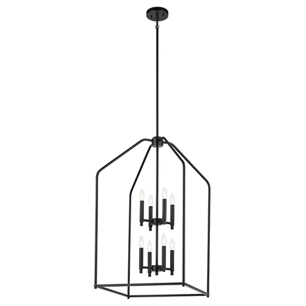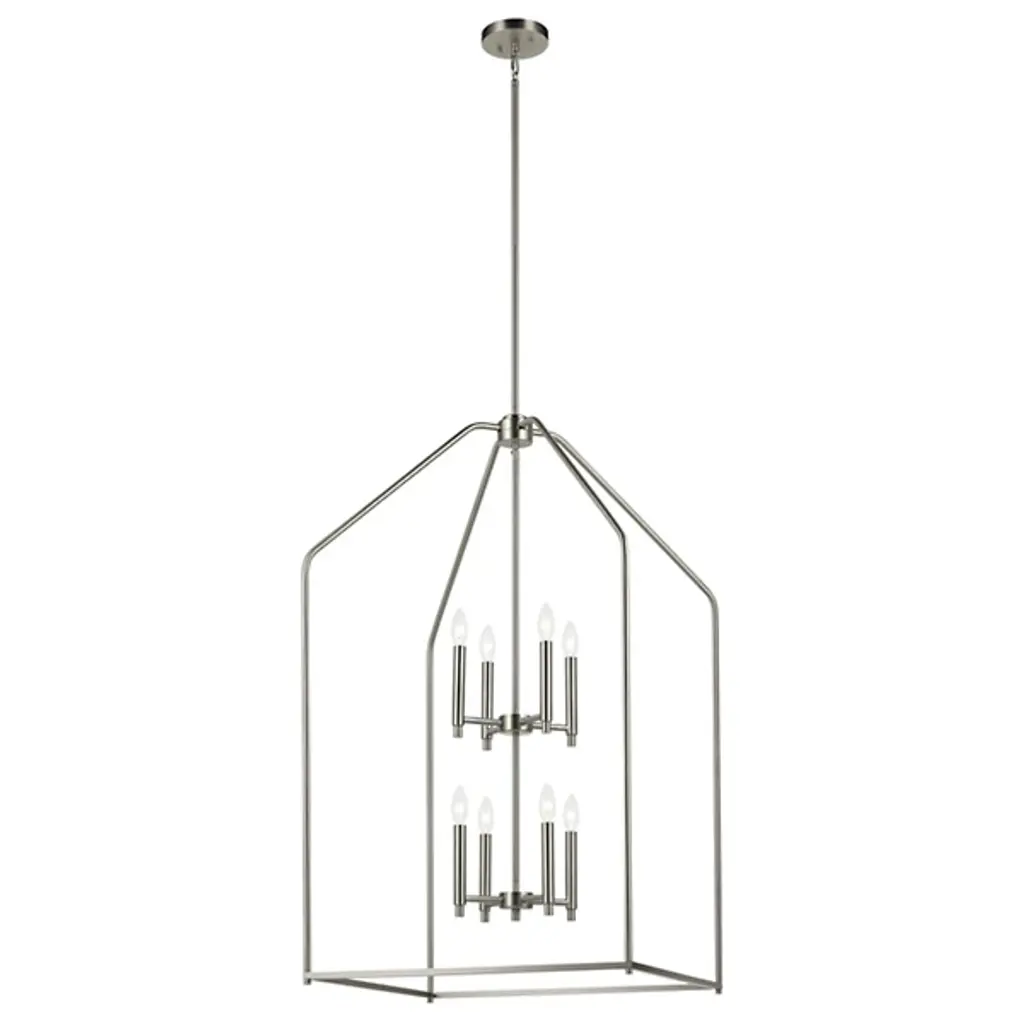 The Madden Two Tier Foryer Pendant from Kichler reimagines candle lighting through its dual-tier steel framework. Eight light sources, arranged in two levels, multiply illumination throughout tall spaces. The luminaire’s open-sided design allows light to reach every corner while maintaining visual lightness. This pendant's vertical scale suits grand entryways and stairwells, where its clean lines create definition without overwhelming the space. The simplified framework focuses attention on the light sources themselves, proving that honest design can enhance architectural features.