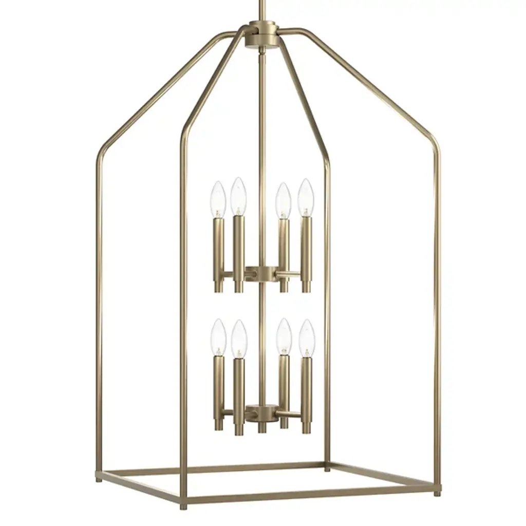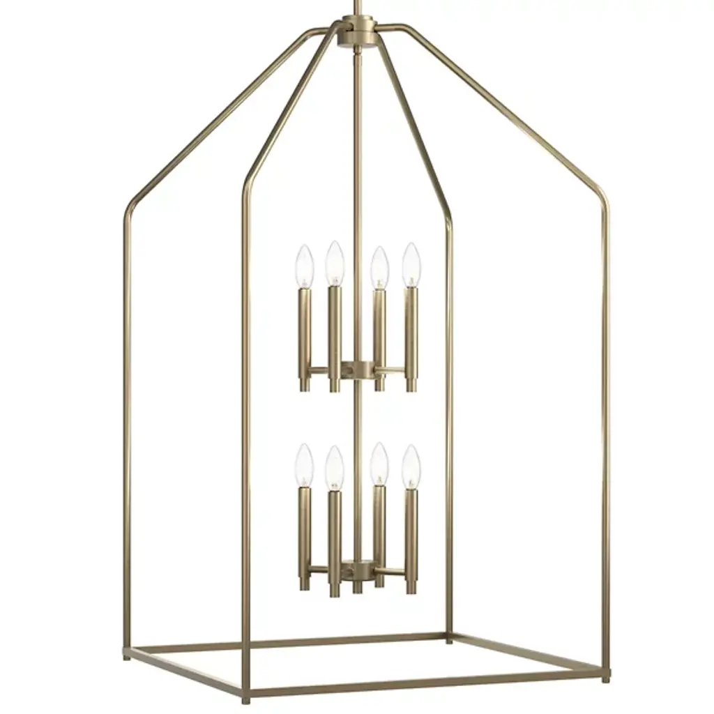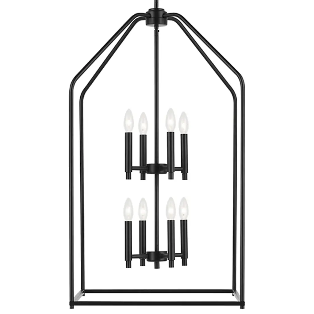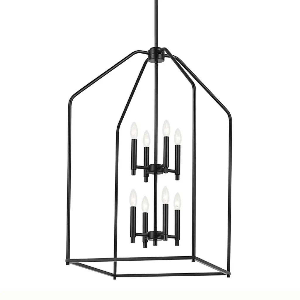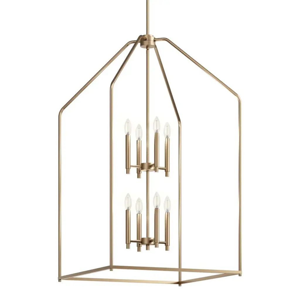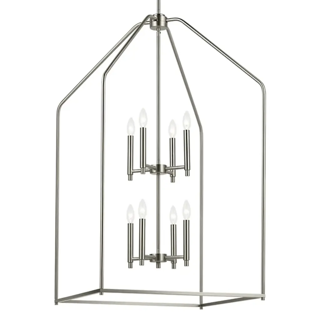 The Madden Two Tier Foryer Pendant from Kichler reimagines candle lighting through its dual-tier steel framework. Eight light sources, arranged in two levels, multiply illumination throughout tall spaces. The luminaire’s open-sided design allows light to reach every corner while maintaining visual lightness. This pendant's vertical scale suits grand entryways and stairwells, where its clean lines create definition without overwhelming the space. The simplified framework focuses attention on the light sources themselves, proving that honest design can enhance architectural features.