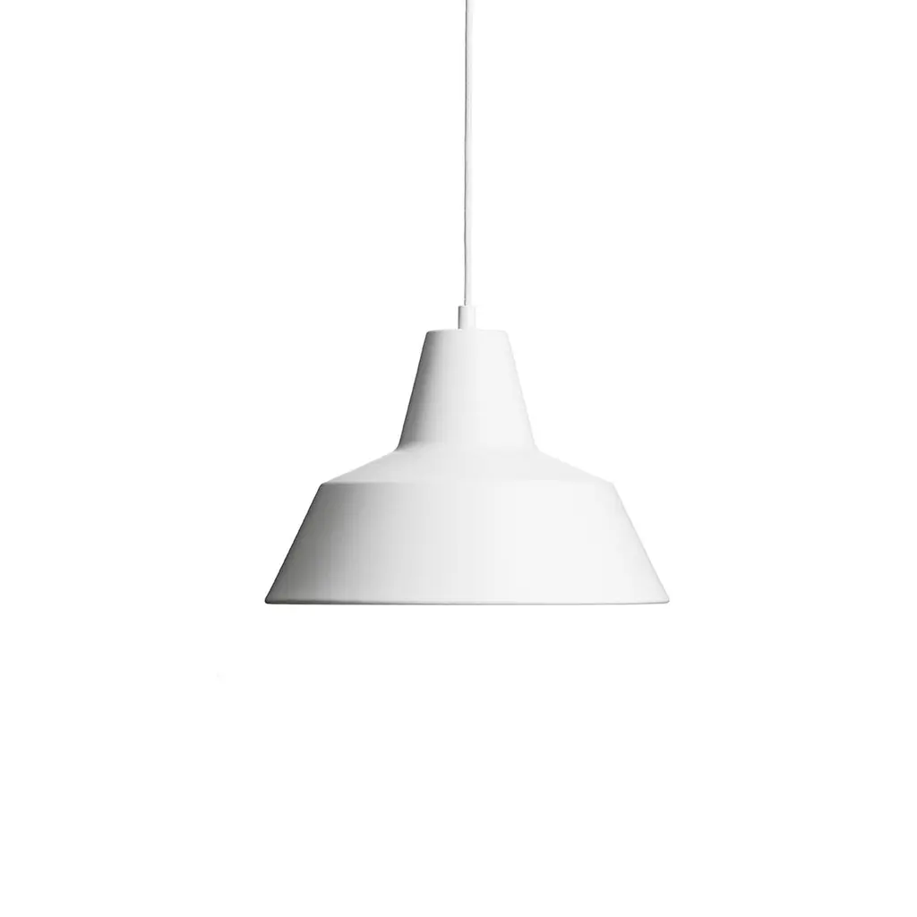Mid-century modern cues and contemporary design principles make the perfect pair in the Made by Hand Workshop W3 pendant lamp. Reproducing the iconic design created by A. Wedel-Madsen in 1951, the Workshop light enters living spaces in style. Instead of a heavy iron shade, the lamp features a lightweight but incredibly sturdy powder-coated spun aluminum or copper shade. A removable diffuser both reduces glare and softens the light. The W3 version measures 13.75″ in diameter and has a height of 9.5″, making it perfect for offices, dining areas and kitchens. You can use it on its own or alongside larger or smaller versions to create a dynamic composition.